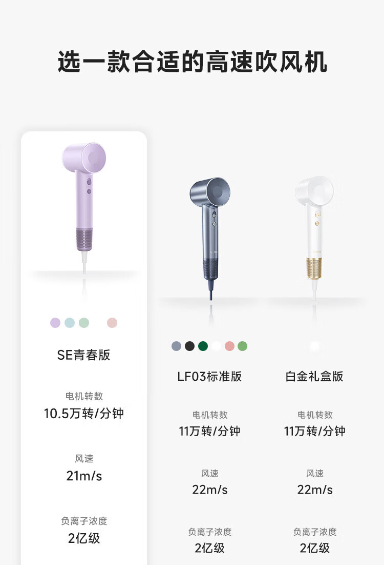 徕芬 SE 吹风机家用电吹风筒大功率高速吹风机负离子大风力速干低噪音莱芬便携无叶
