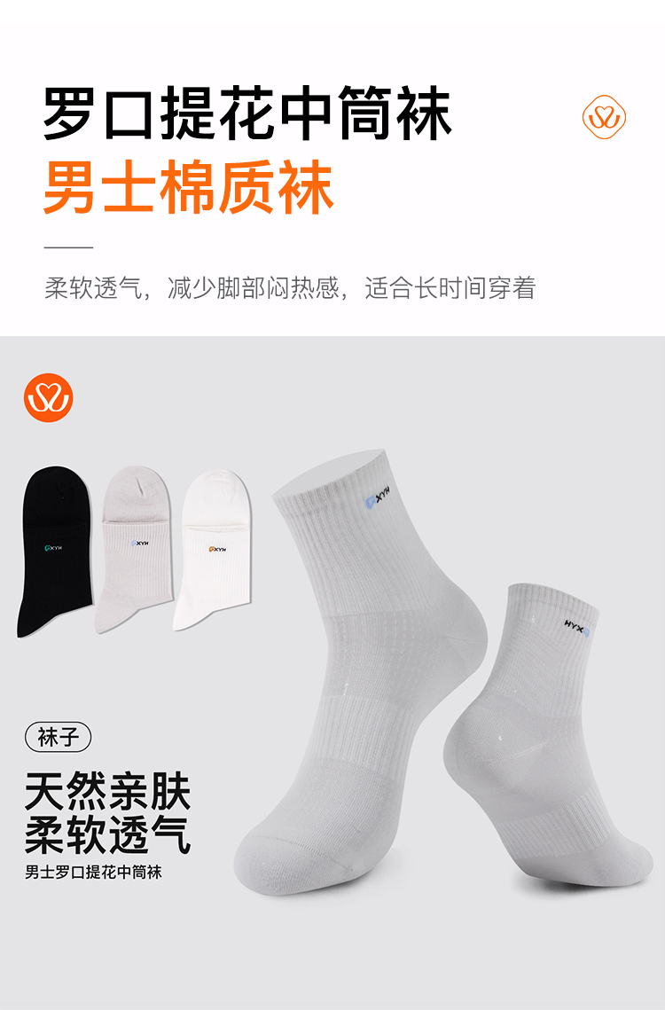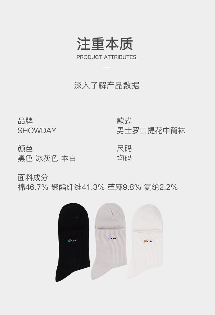 【满3双/19.9元】【秀黛】男士罗口提花中筒袜亲肤柔软透气中筒袜W5221001T【门店同款】