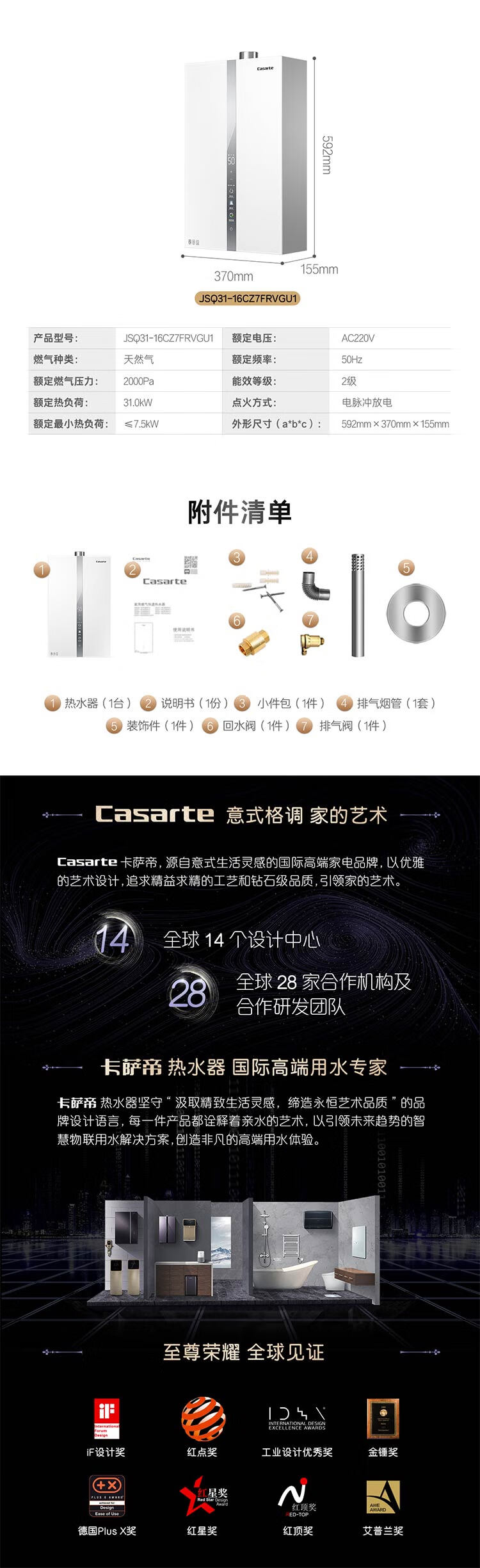 卡萨帝燃气热水器JSQ31-16CZ7FRVGU1