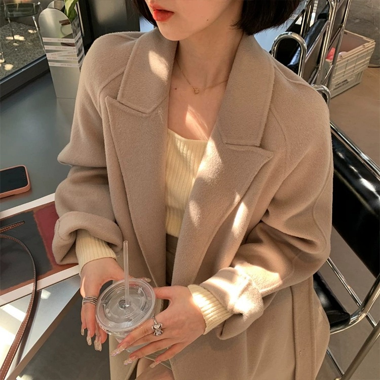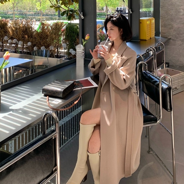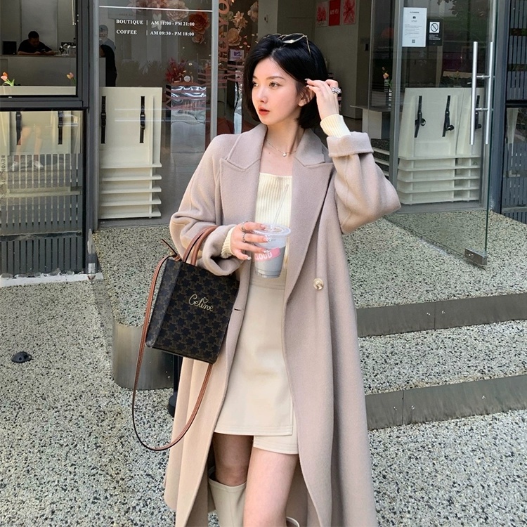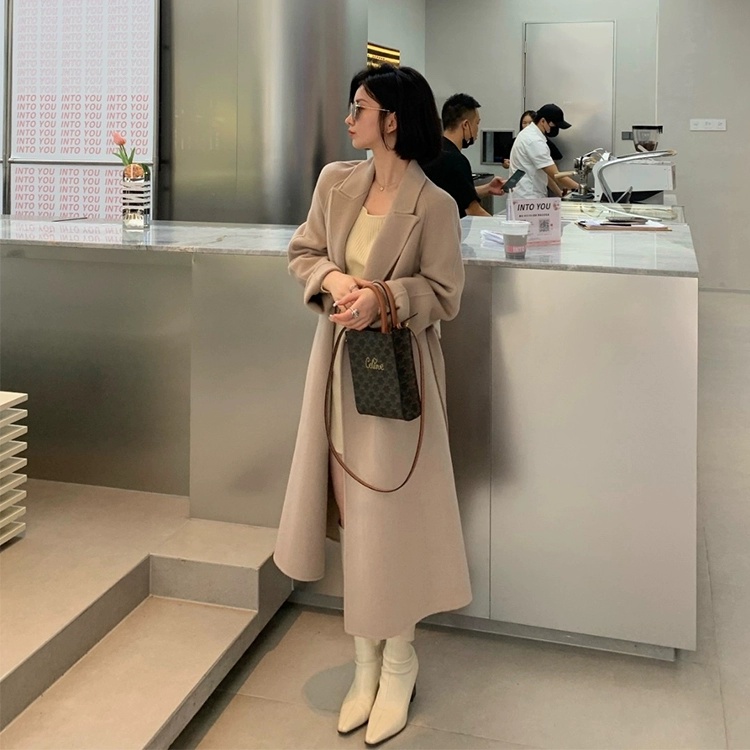 金蘑菇菇 赫拉女神 100羊毛灰色经典大气双面呢大衣