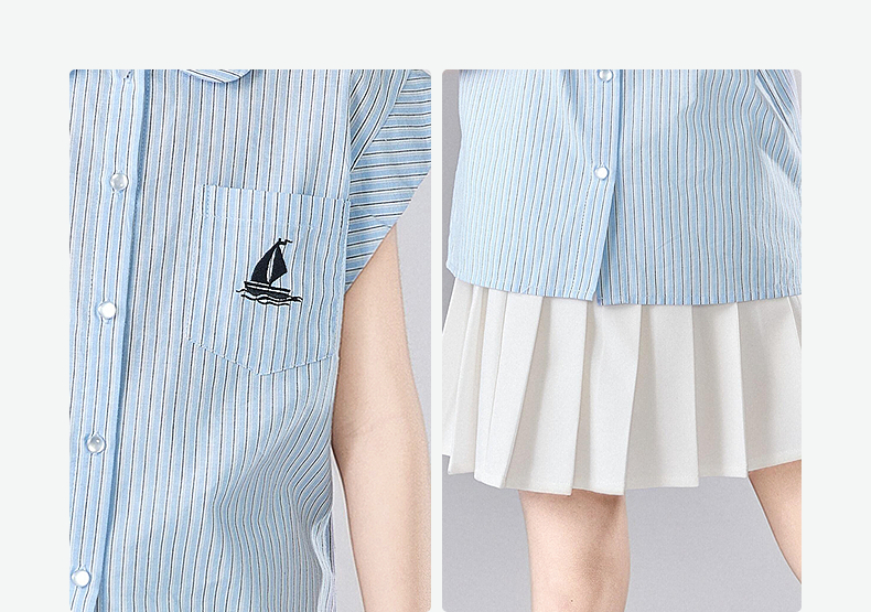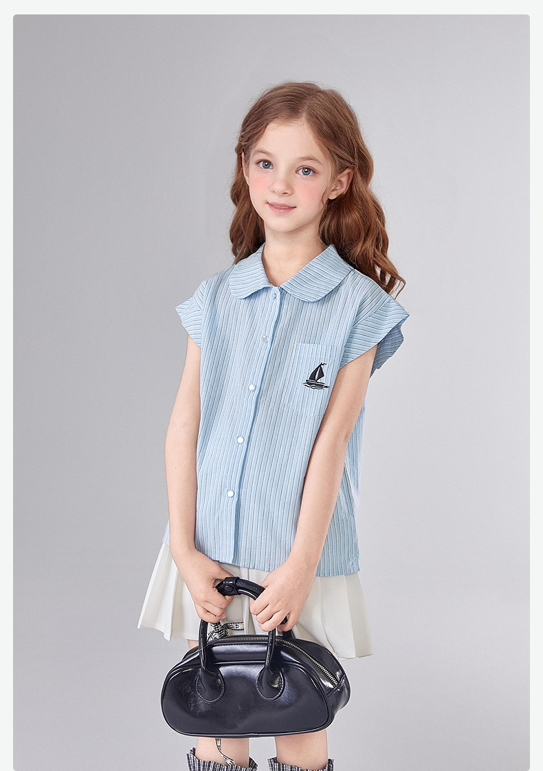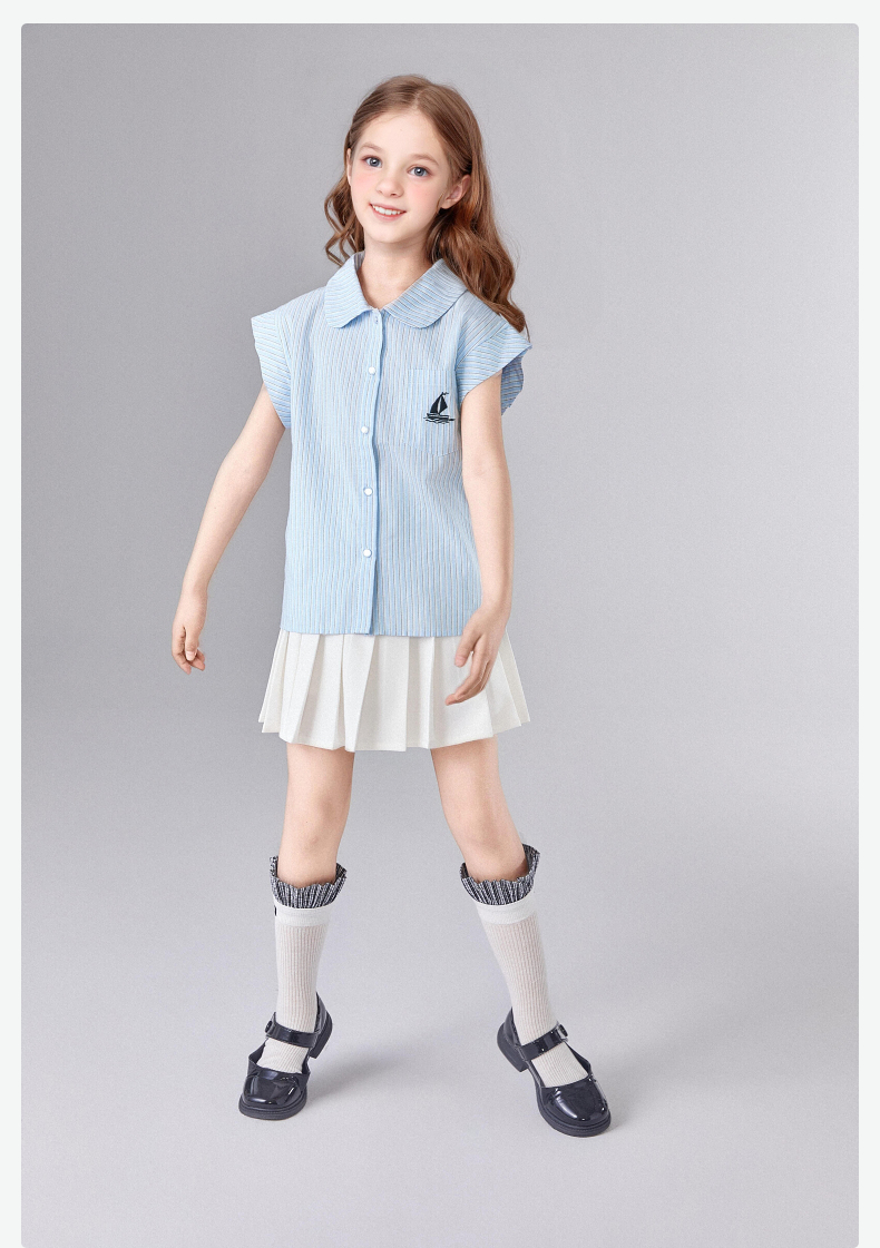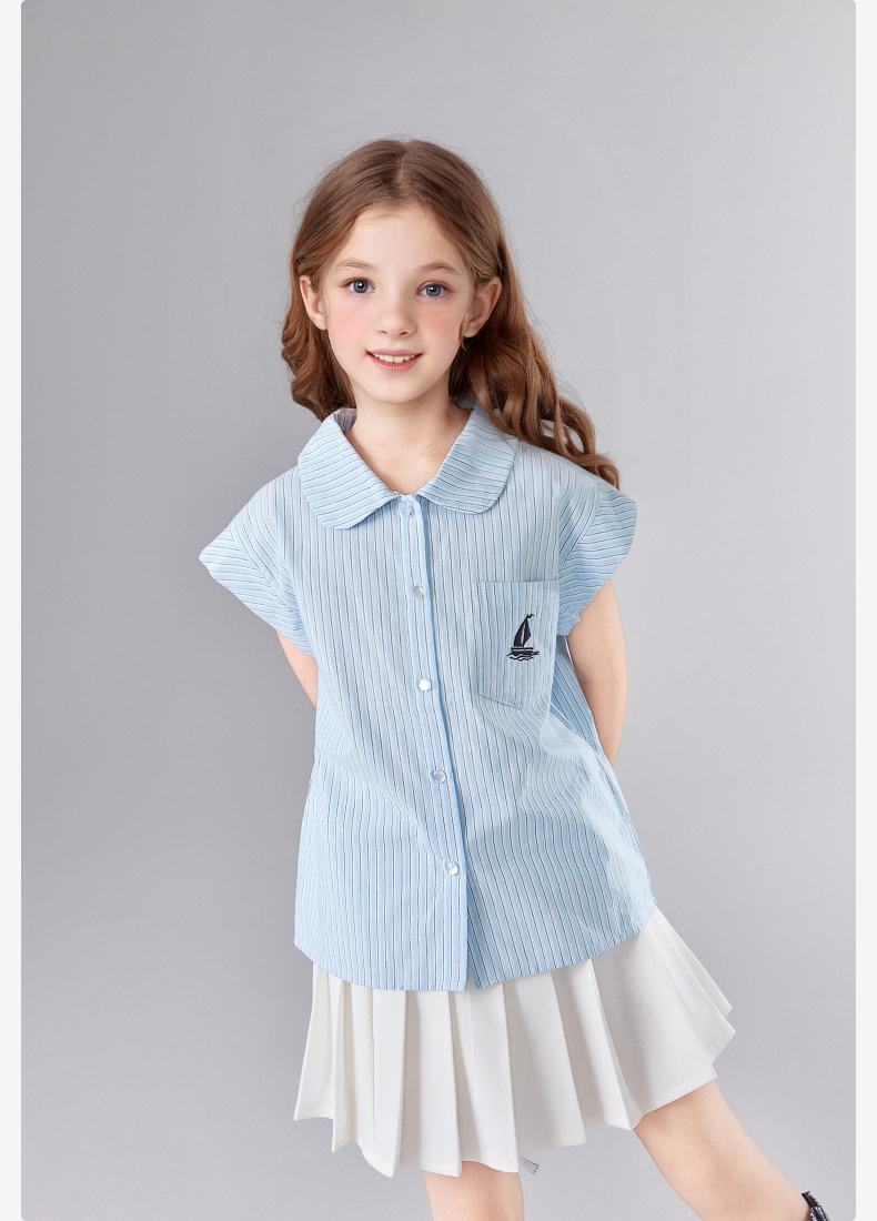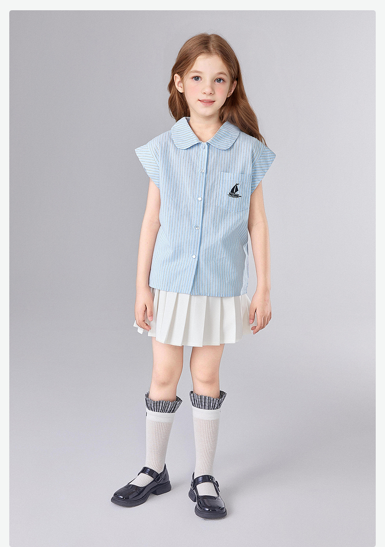 笛莎Deesha 童装女童套装2025夏新款女童休闲度假条纹百褶裙衬衫套装