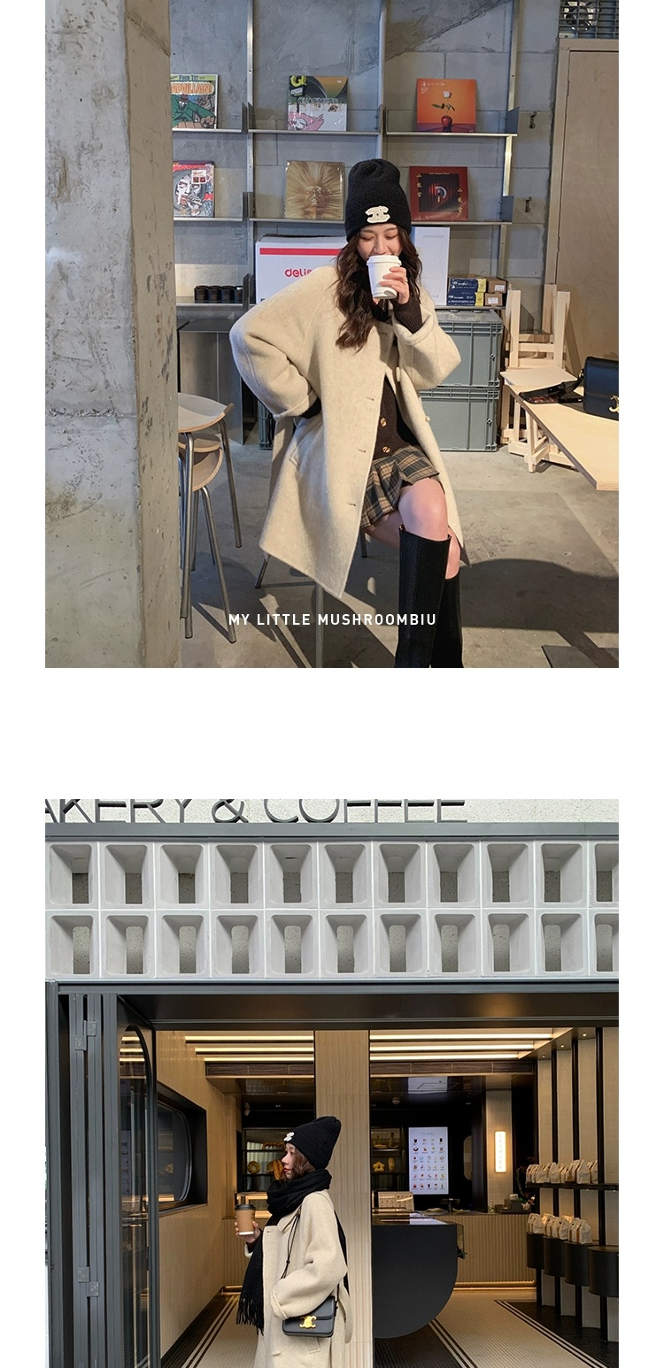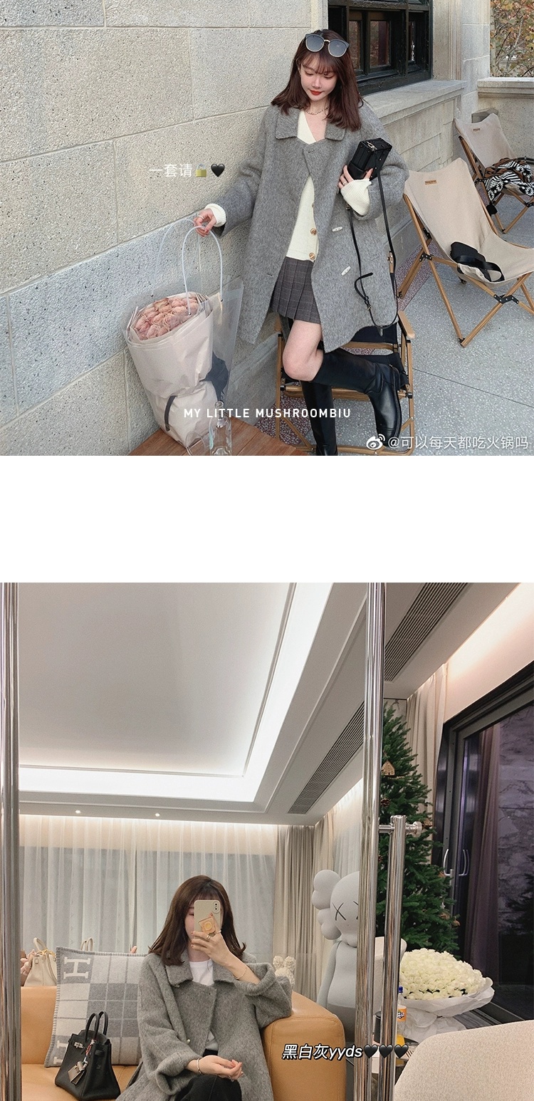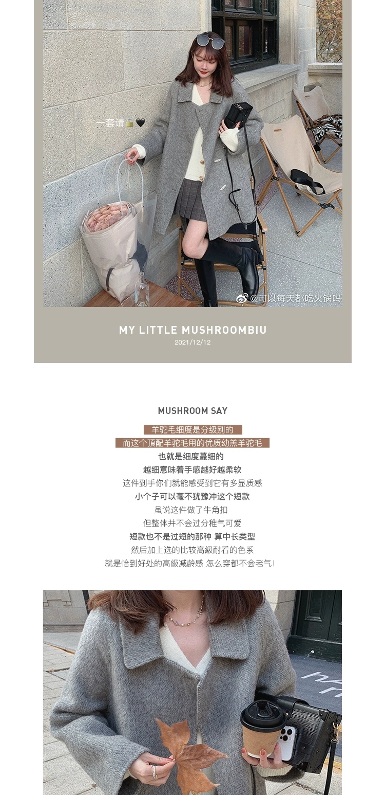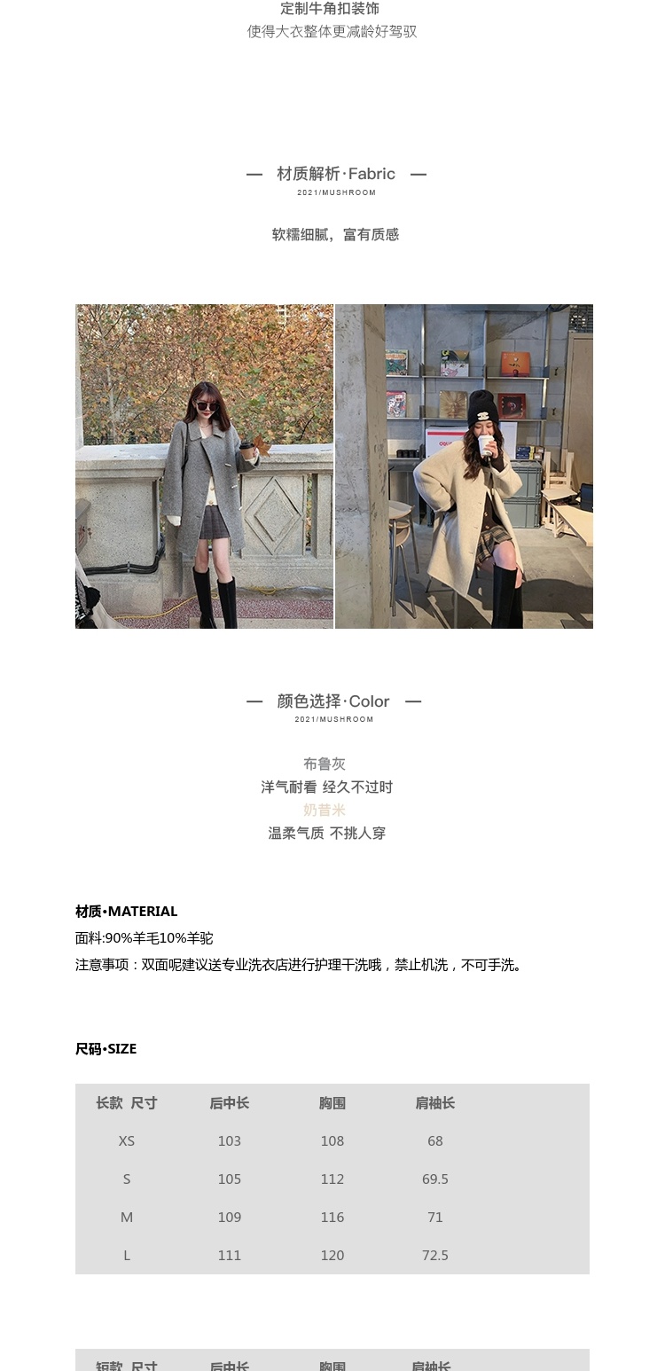金蘑菇菇(奶昔米 短M、布鲁灰 长S)【格兰堡少女】定制牛角扣+嵿配羊驼加码克重!