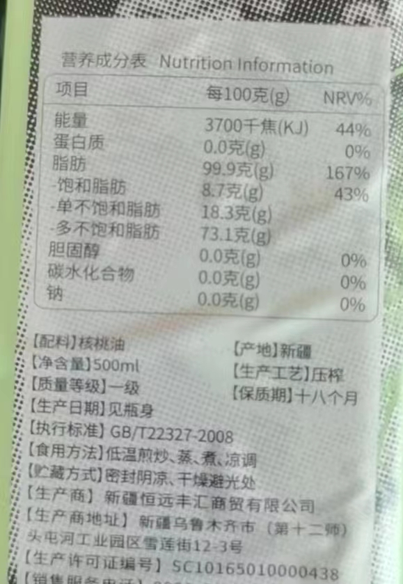 【健康油】【核桃油、亚麻籽油、红花油】物理冷榨 核心产地 不饱和脂肪酸的油