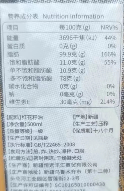 红花籽油是世界卫生组织(WHO),LIANHEGUO粮农组织(FAO)联合推荐的健康油脂