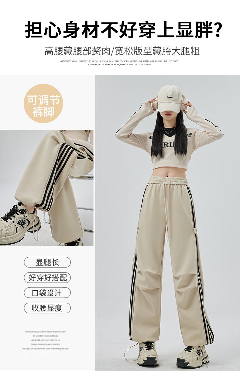 赤兔嗨购女士美式运动裤女24年新款直筒休闲束脚阔腿裤