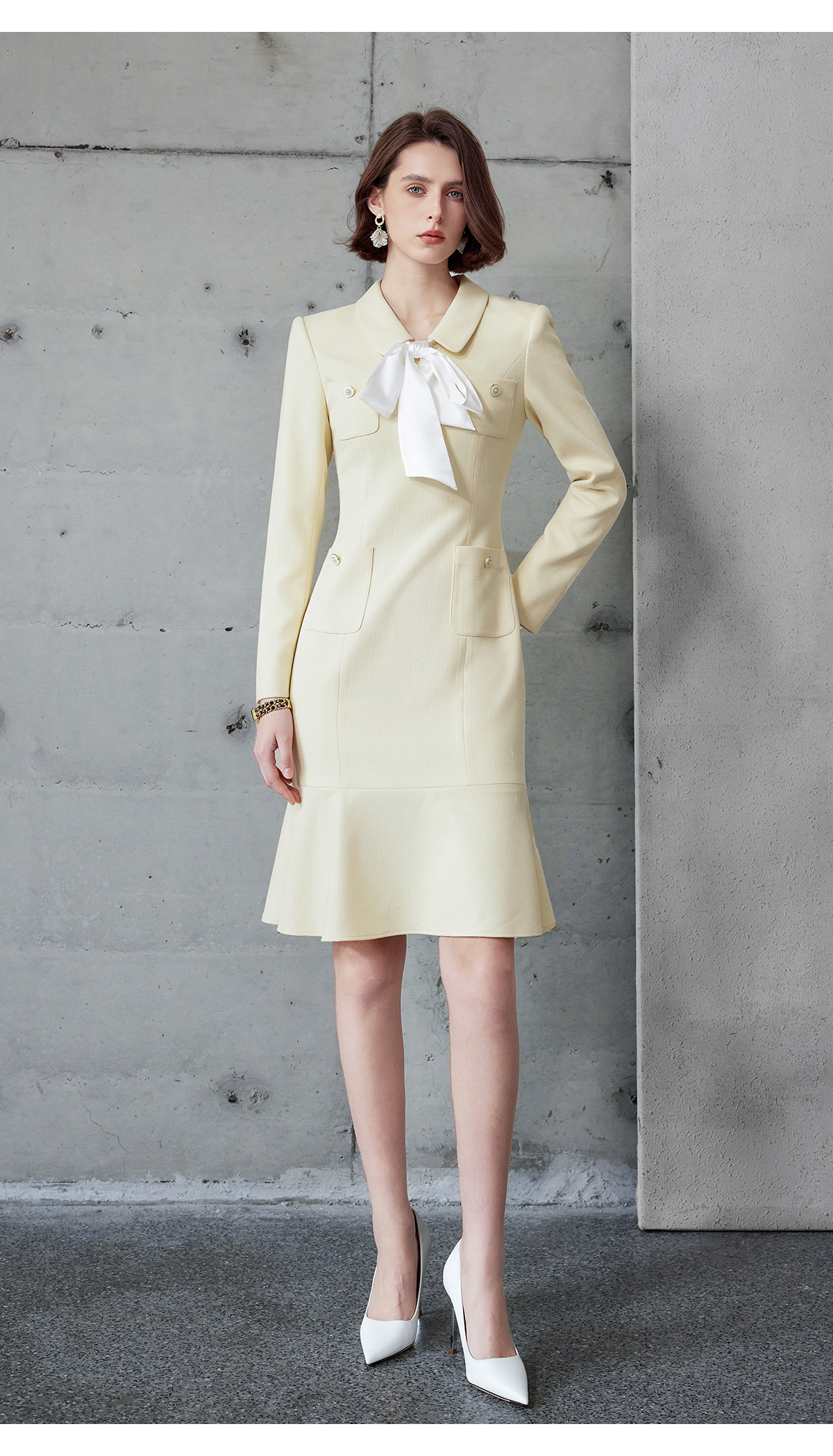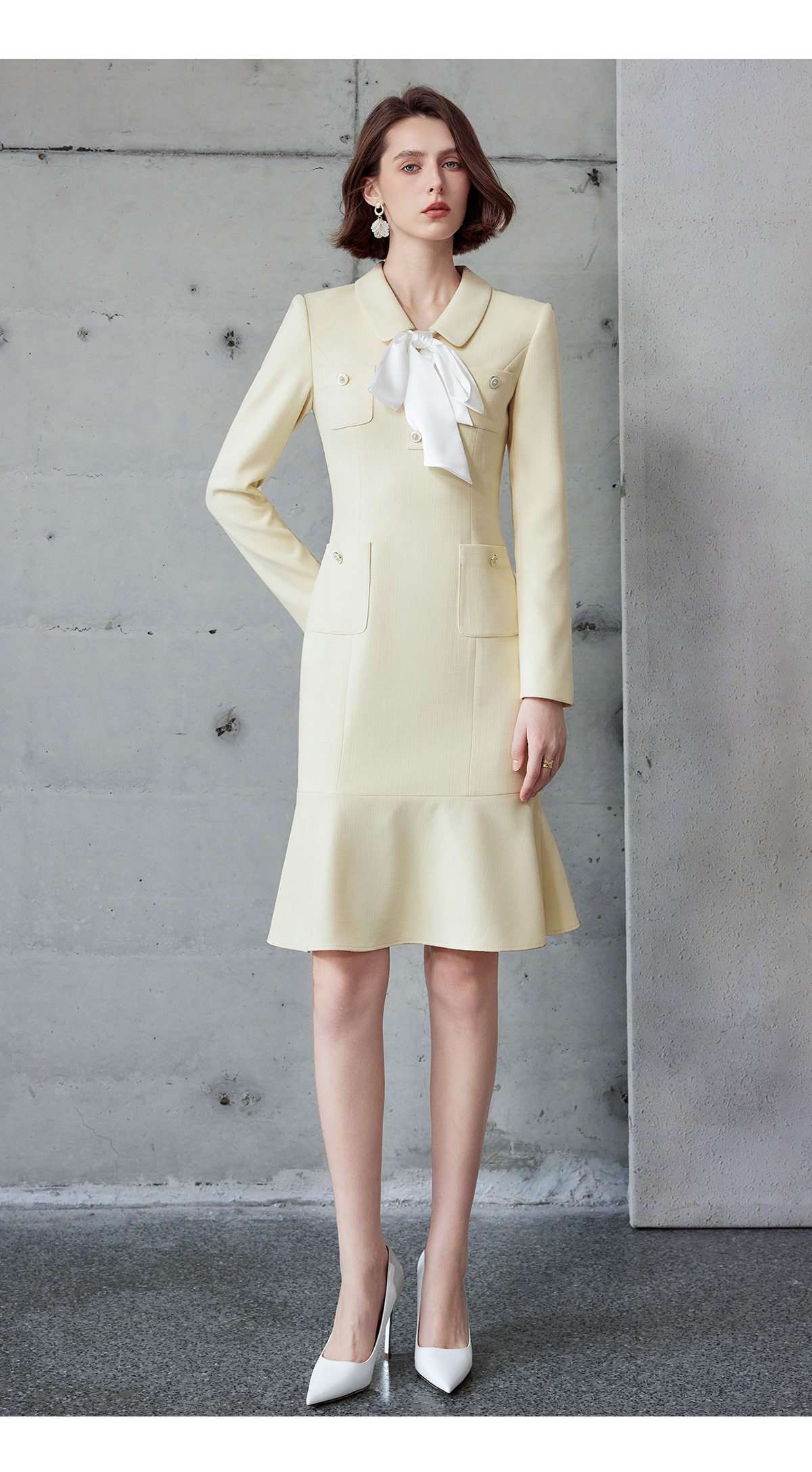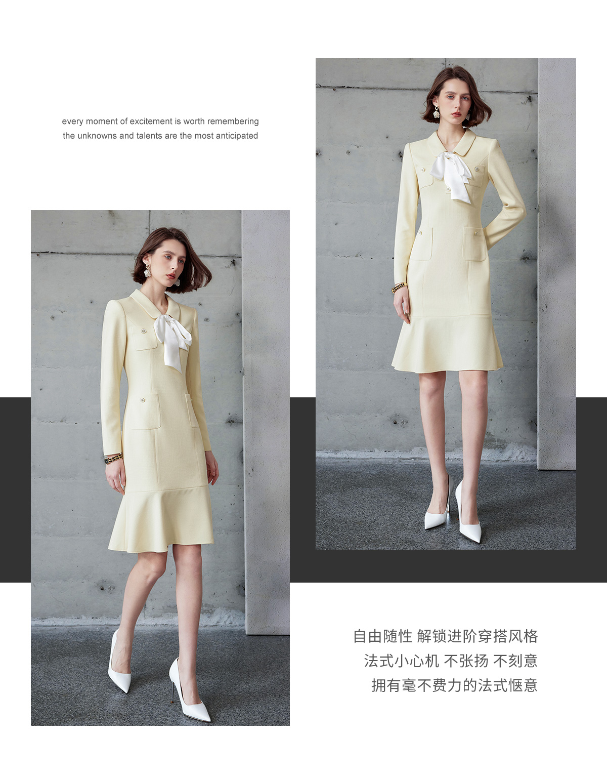 IWY/富家千金感穿搭套装女入秋韩系翻领小香风职业连衣裙荷叶边长袖Q1218