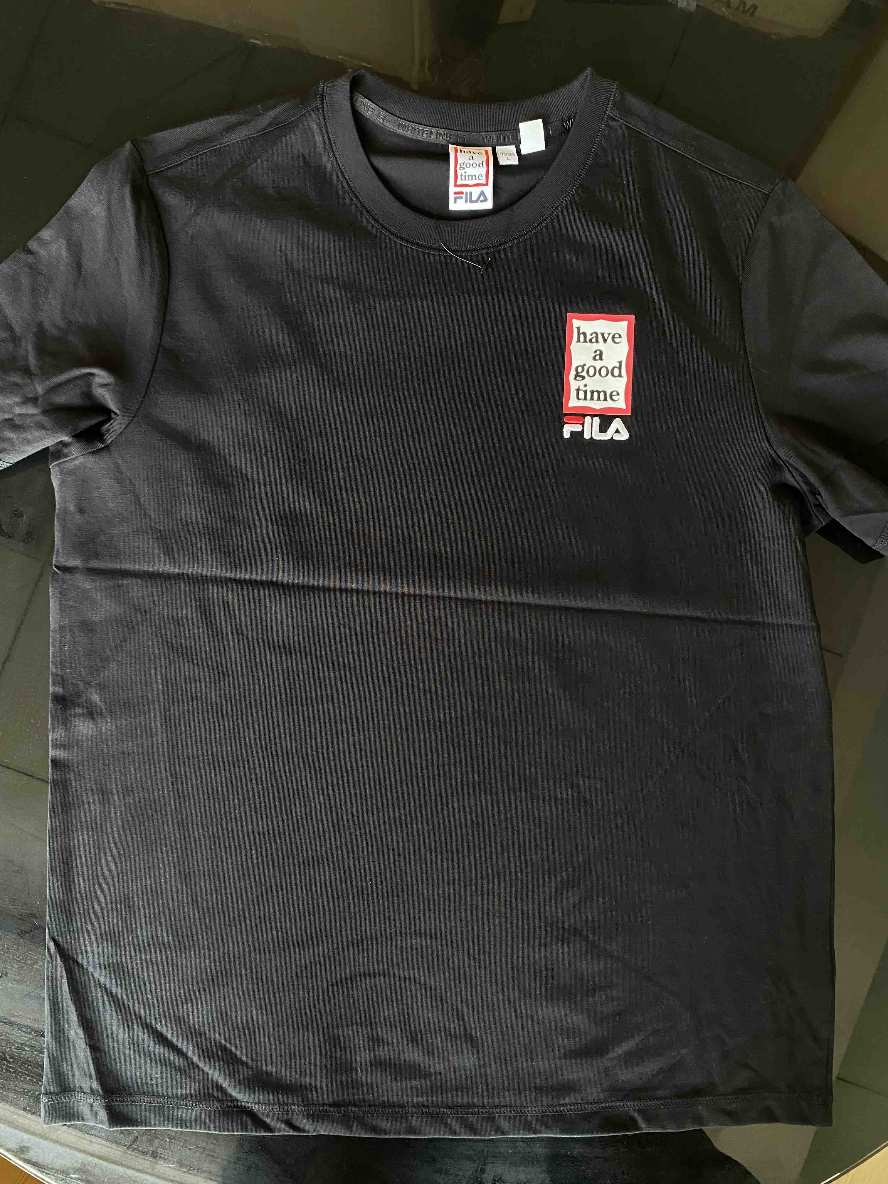 Fila X Have a good time联名款,男女情侣款。剩余基本都是黑色,区区三十来件。百搭,质感很棒。到手感叹,舍得下成本,自然越做越好,感觉Fila已经撑起安踏集团半边天了。绝对自留,没啥好说的,这价格这品质不留说不过去。