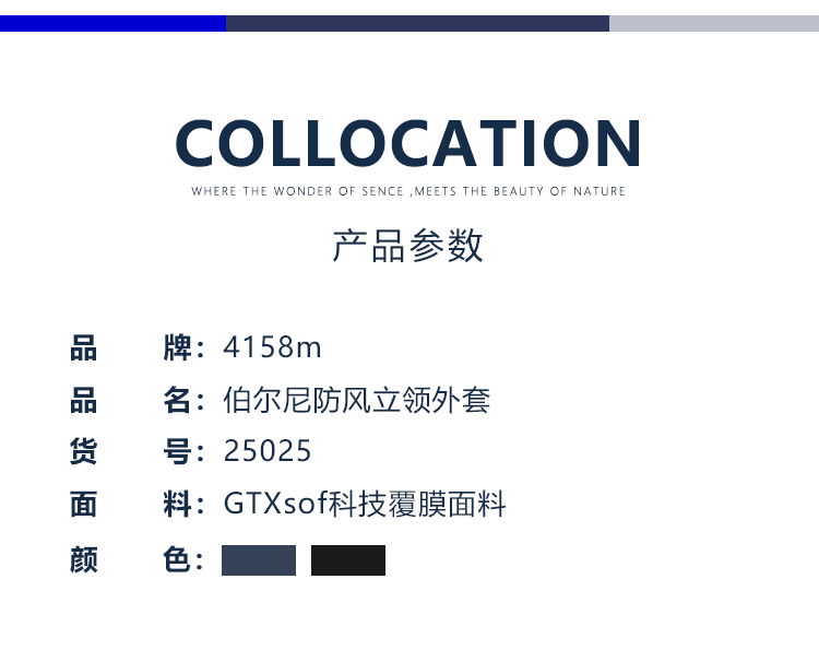 4158m山系行政 伯尔尼S2中间层立领/连帽风衣外套男