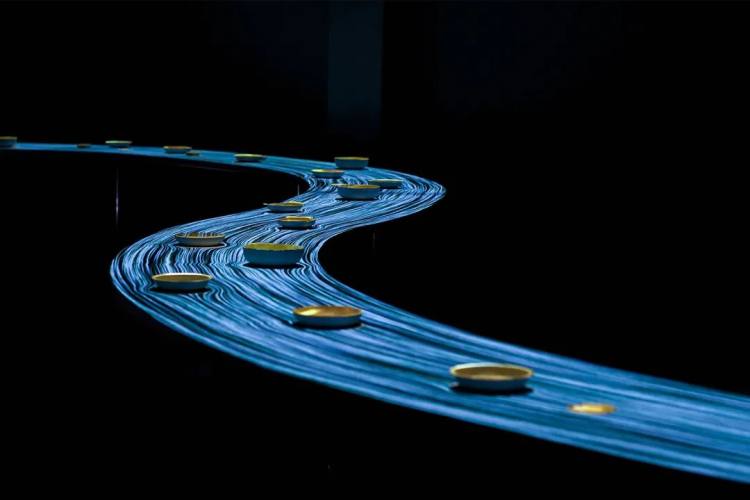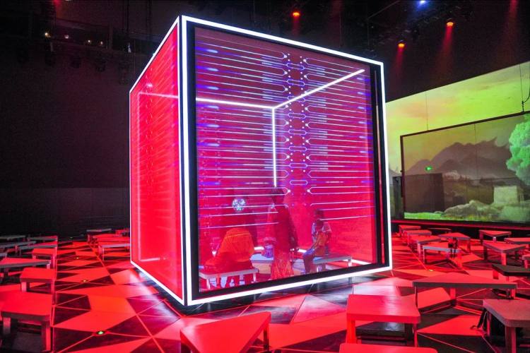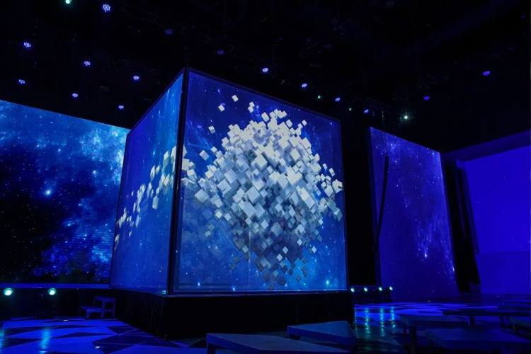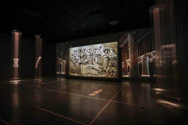 中央广播电视台《国家宝藏》线下体验馆,占地2500多平米,包括沉浸体验场、国宝盒子、国宝庭院及国宝文创四部分。体验馆提取传统文化中代表东方智慧与美学的九件国宝,通过沉浸交互、数字艺术和装置艺术演绎文物,打造乐园式超时空文化博物场。