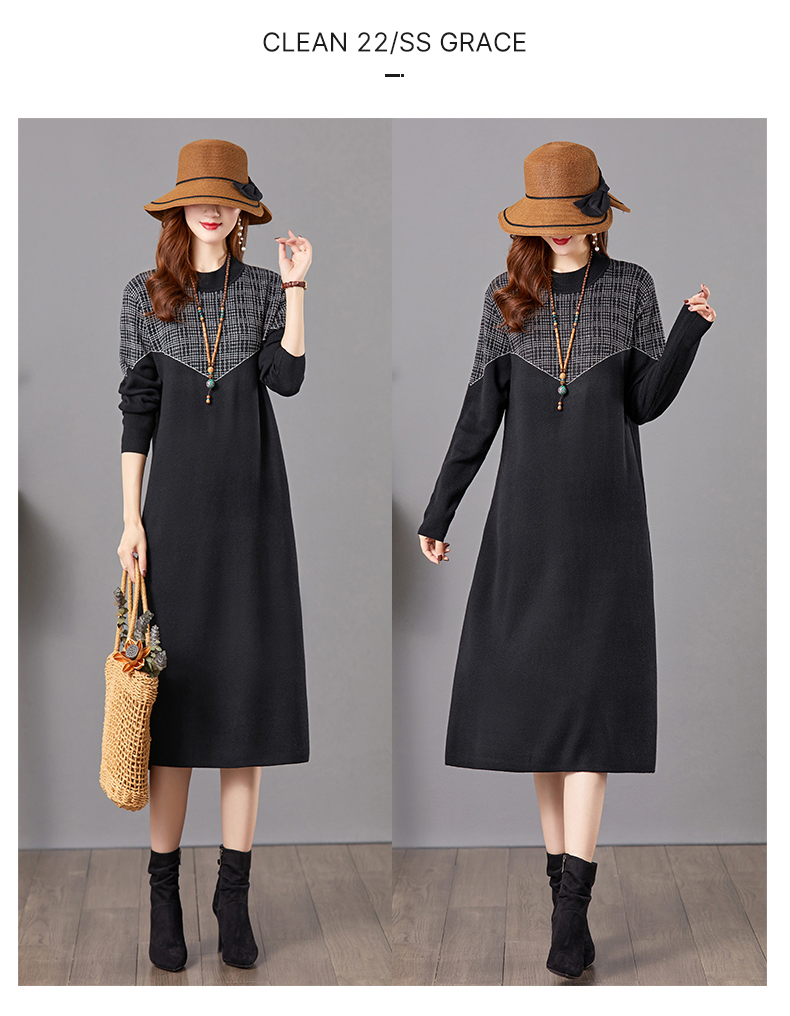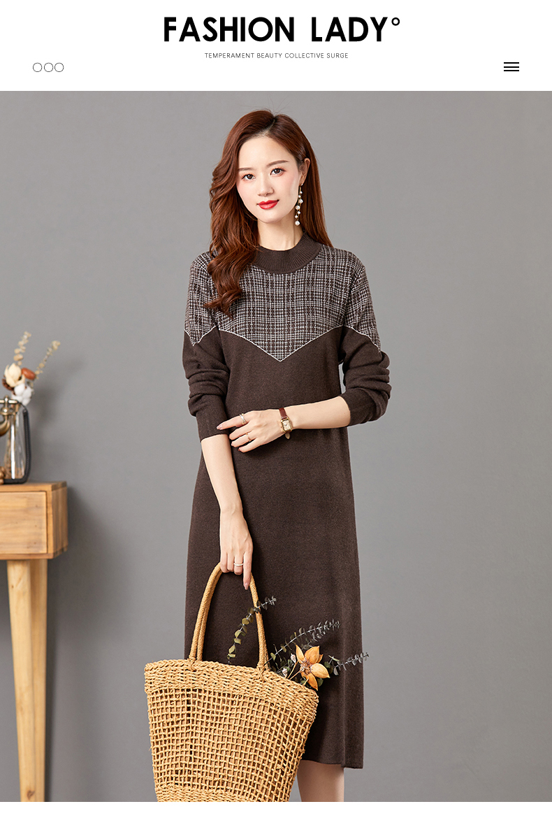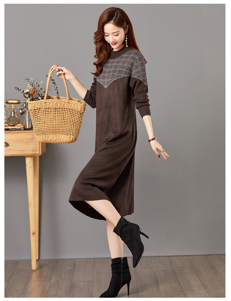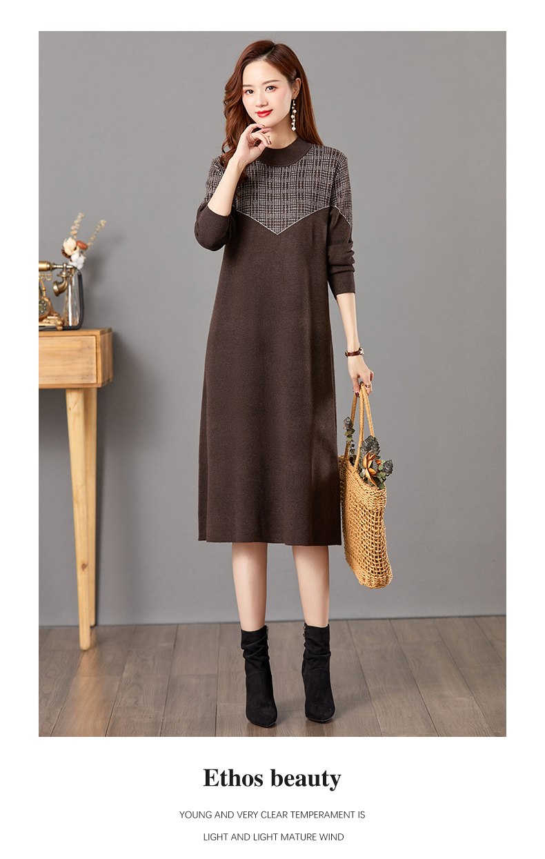 气质针织连衣裙冬季打底毛衣裙中长款内搭裙子CC-E-5260