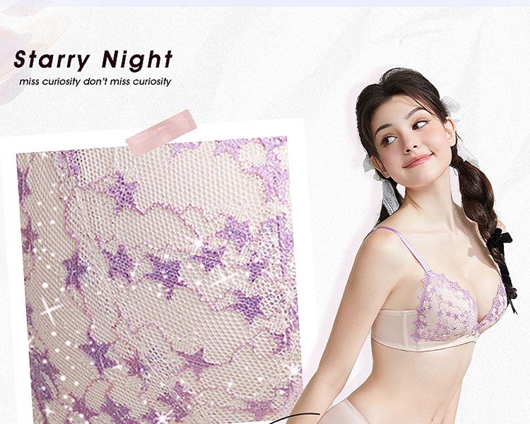 好奇蜜斯细肩带内衣女法式蕾丝三角杯无钢圈小胸文胸罩套装26夏薄-桑妮