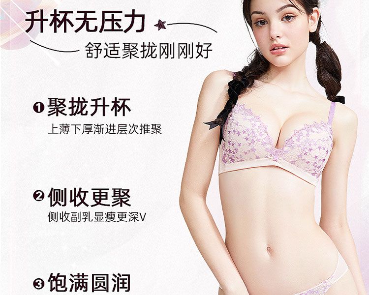 好奇蜜斯蕾丝内衣女聚拢小胸显大无钢圈新款爆款文胸罩套装 维纳斯