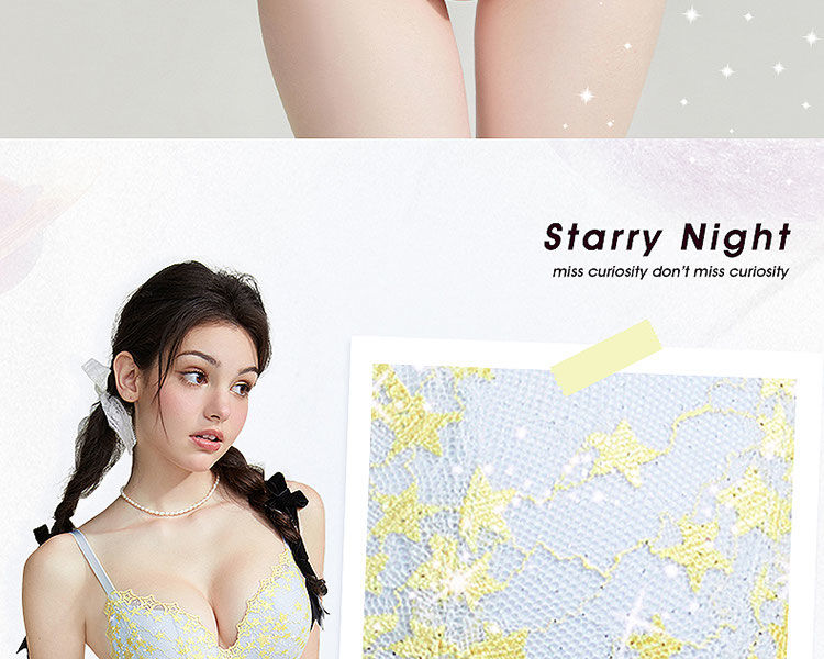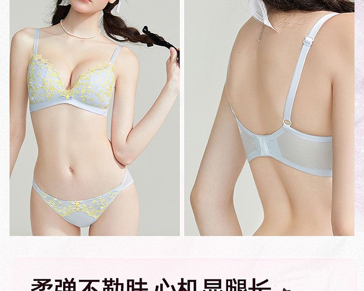 好奇蜜斯法式内衣女纯欲文胸罩套装大胸显小胸无钢圈26夏三角杯黄-奥妮卡