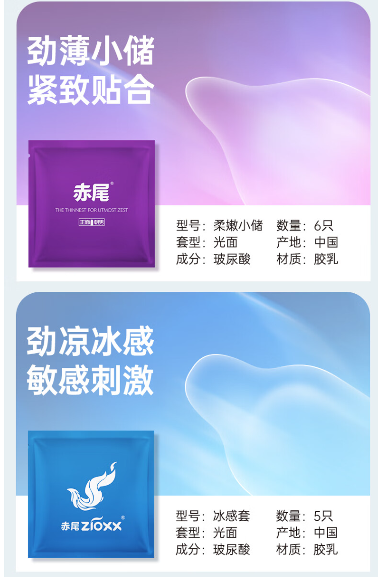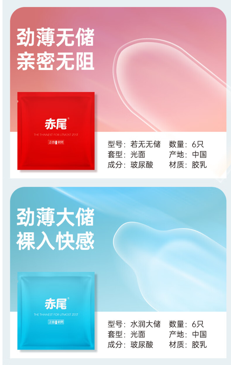 赤尾 超薄避孕套 玻尿酸安全套 劲薄六合一 30只 冰感微结构 套套男用女用 计生成人用品