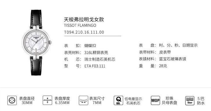 | 品牌 | 天梭 TISSOT | 型号 | T094.210.16.111.00 |