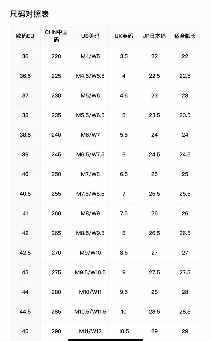 SIZE:36 36.5 37 38 38.5 39 40 40.5 41 42 42.5 43 44 44.5 45