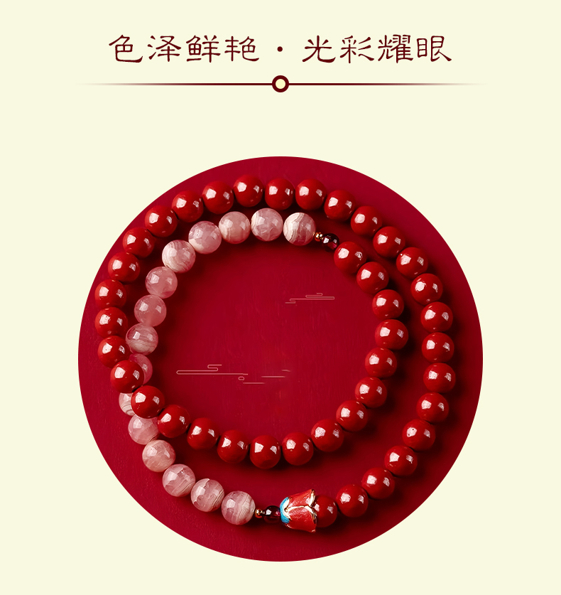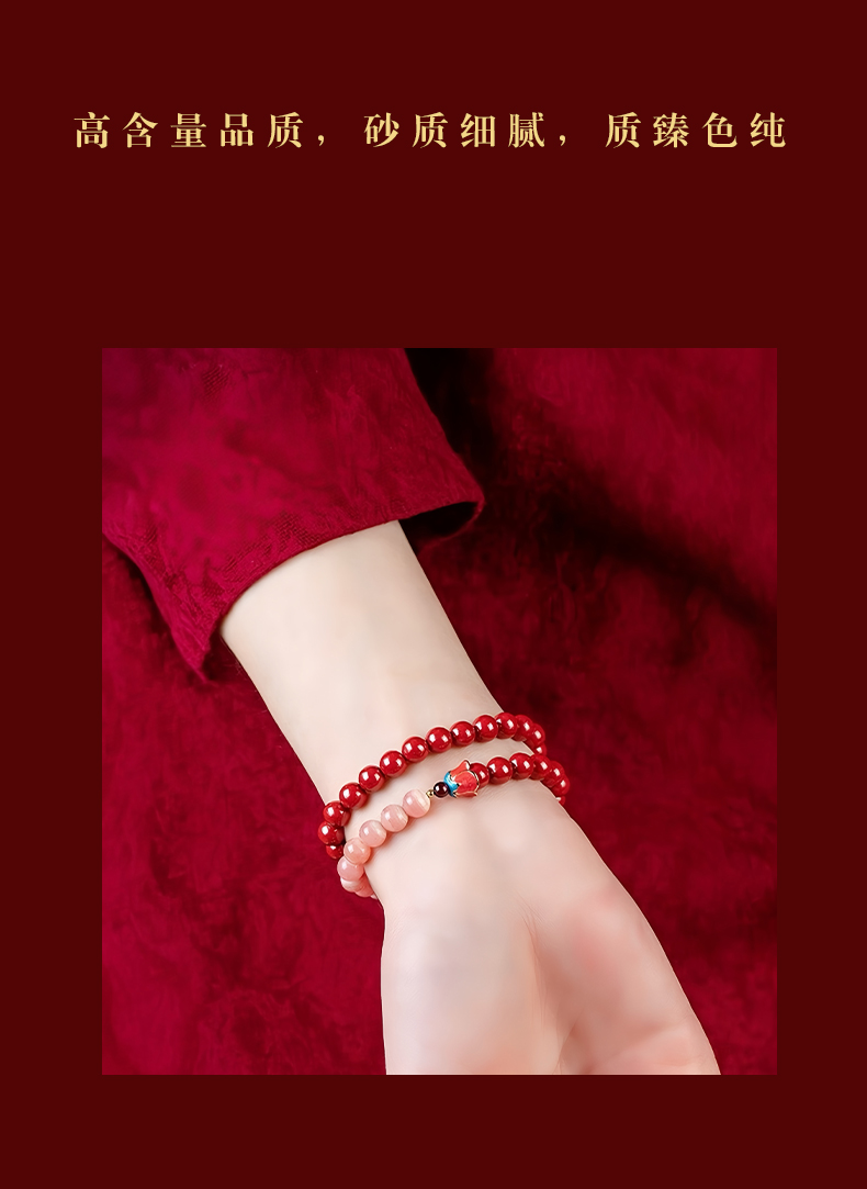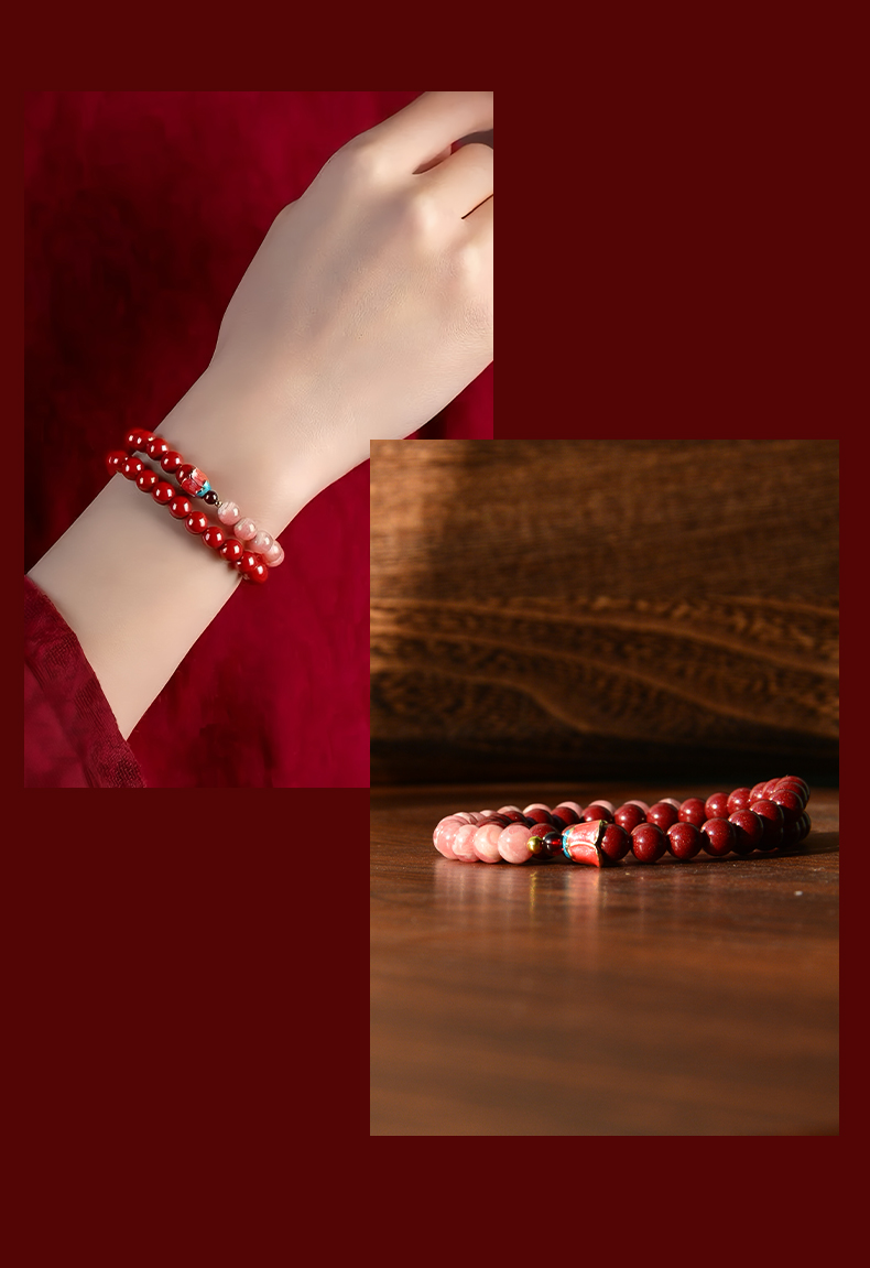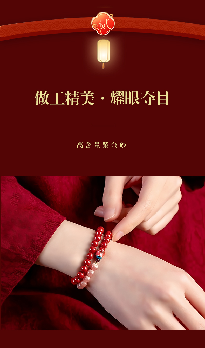 紫金砂 花开见喜红纹石双圈手串【珠子直径6mm】
