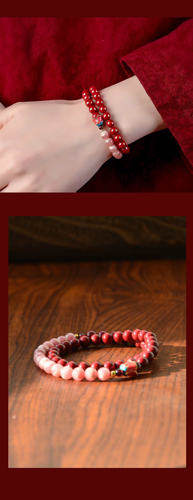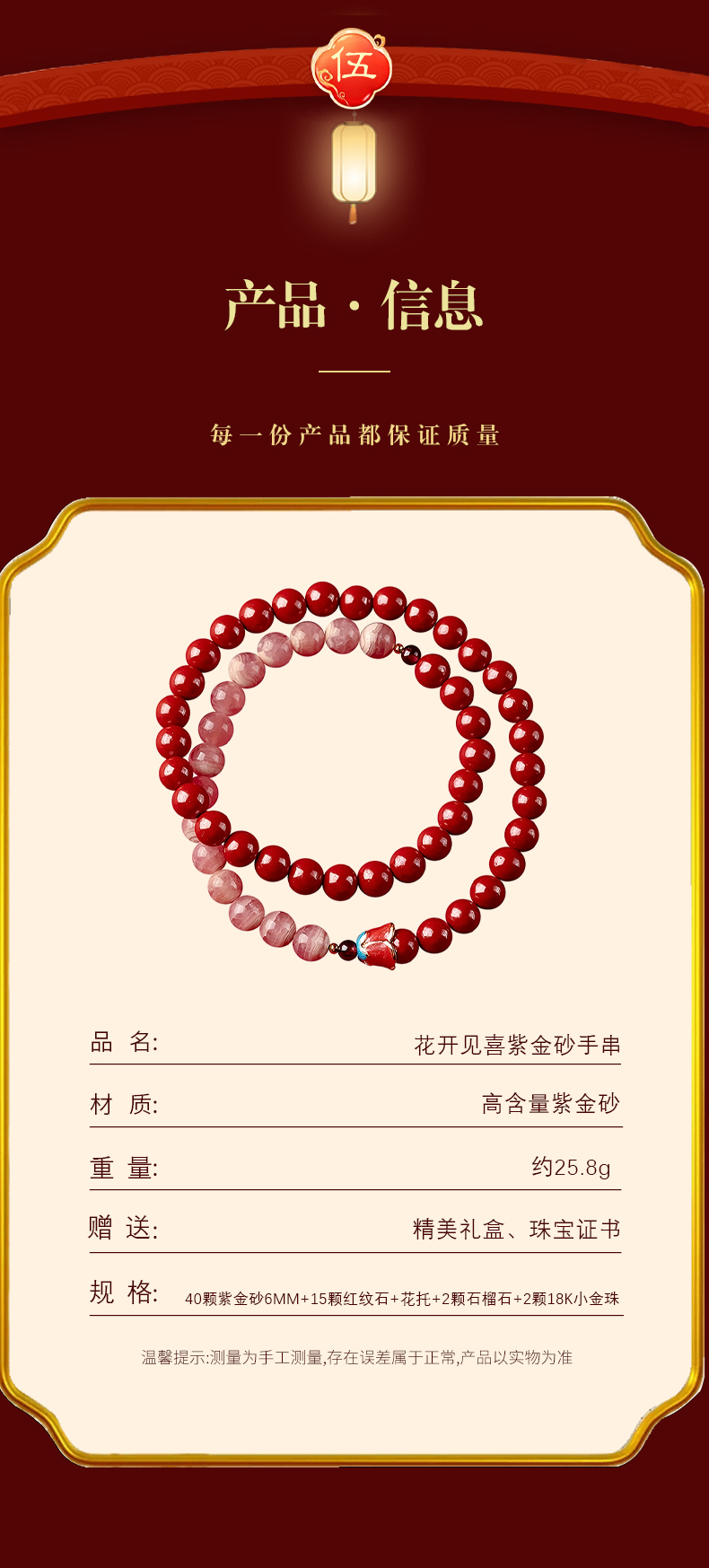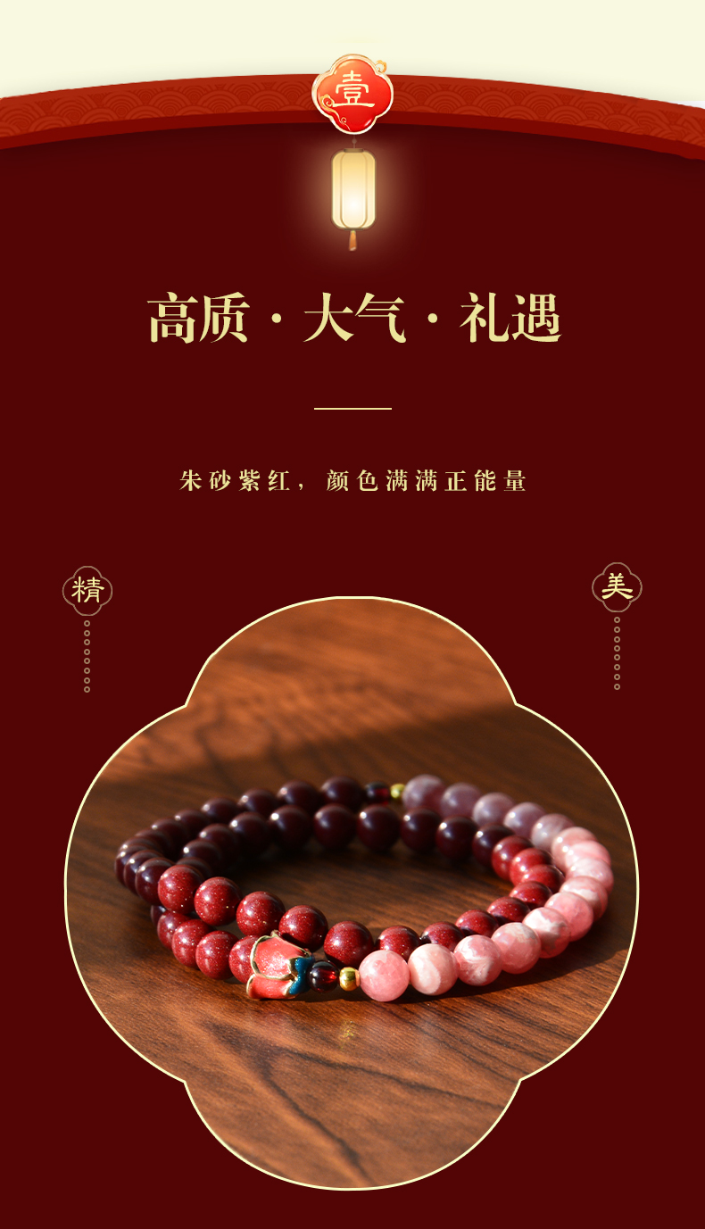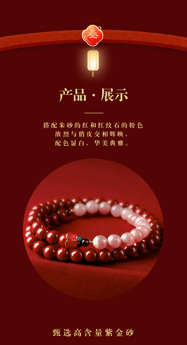 紫金砂 花开见喜红纹石双圈手串【珠子直径6mm】