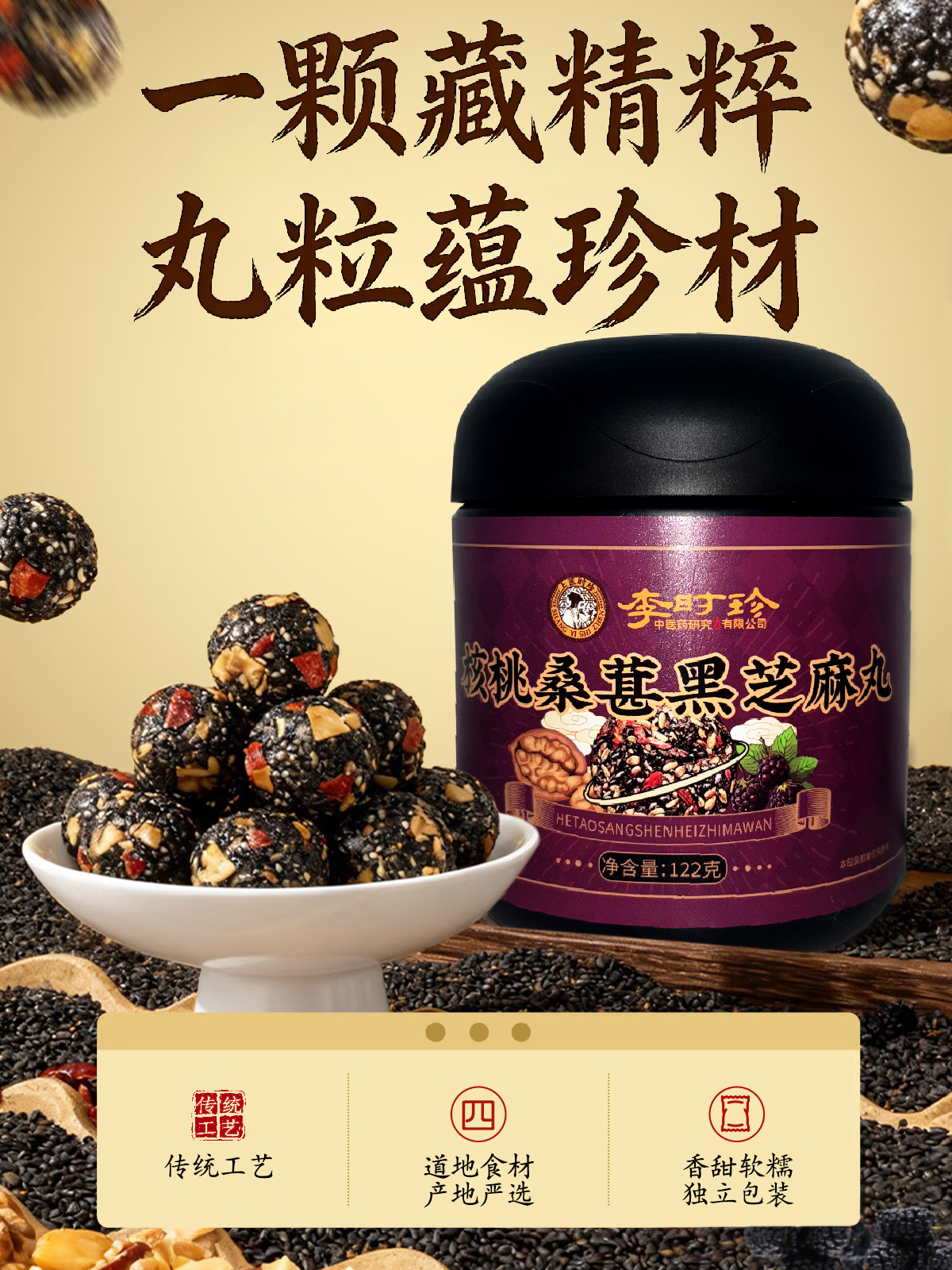 专属【买2送1,买3送2,买5送4】李时珍·核桃桑葚黑芝麻丸 黑芝麻≥40%,九蒸九晒工艺制作 12颗左右/罐