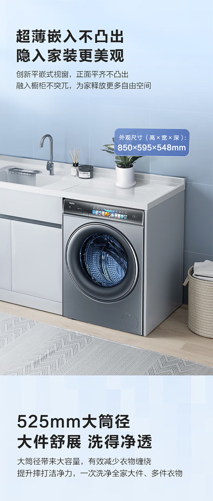海尔(Haier)(252052)滚筒洗衣机全自动家用精华洗晶彩屏10公斤容量一级能效变频巴除菌双智投全触屏直驱G10078BD14LS