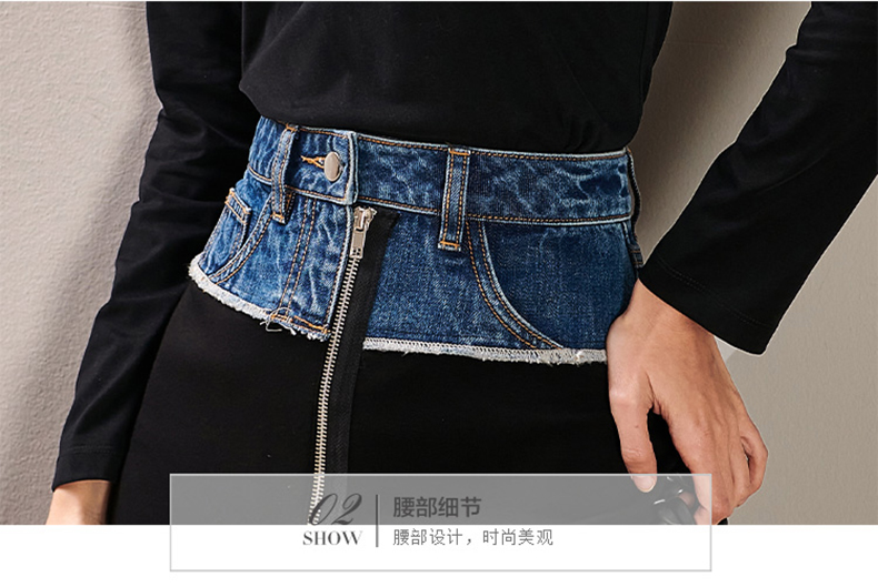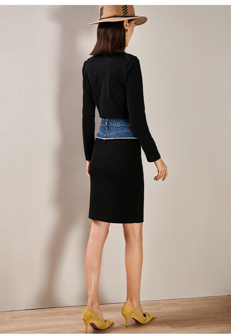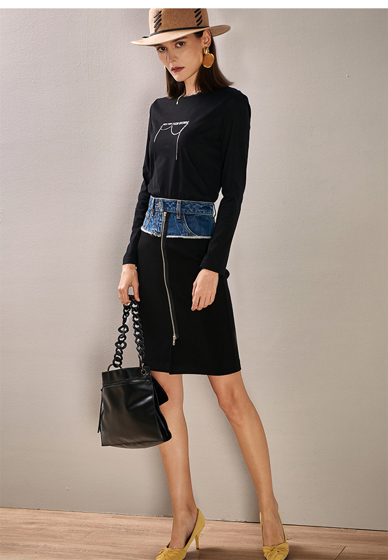 剩S/M/L/XL 芳外新款牛仔拼接半裙新款包臀拉链设计半截裙8T21AI0108