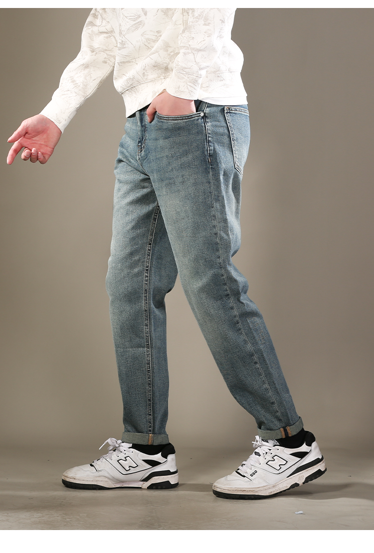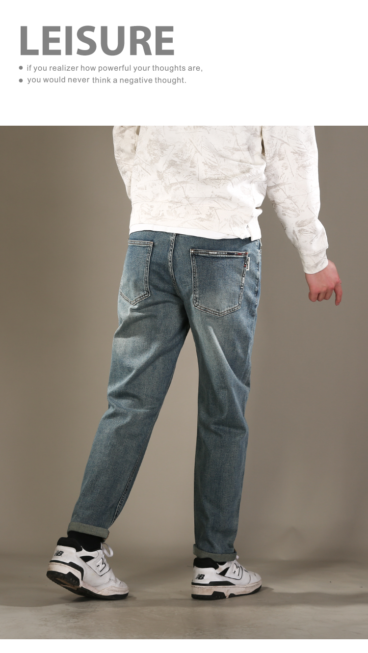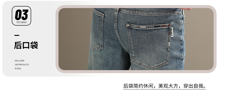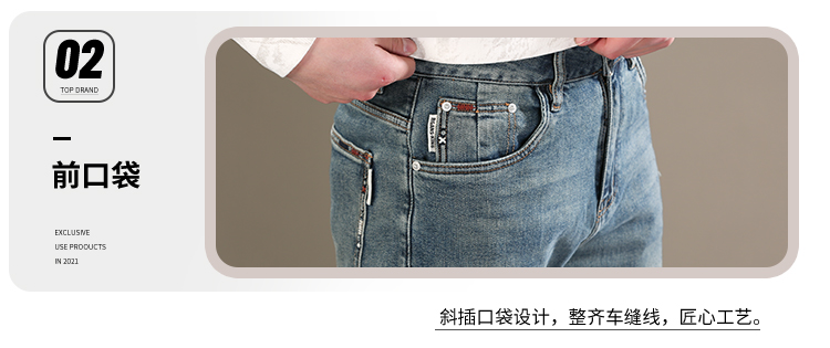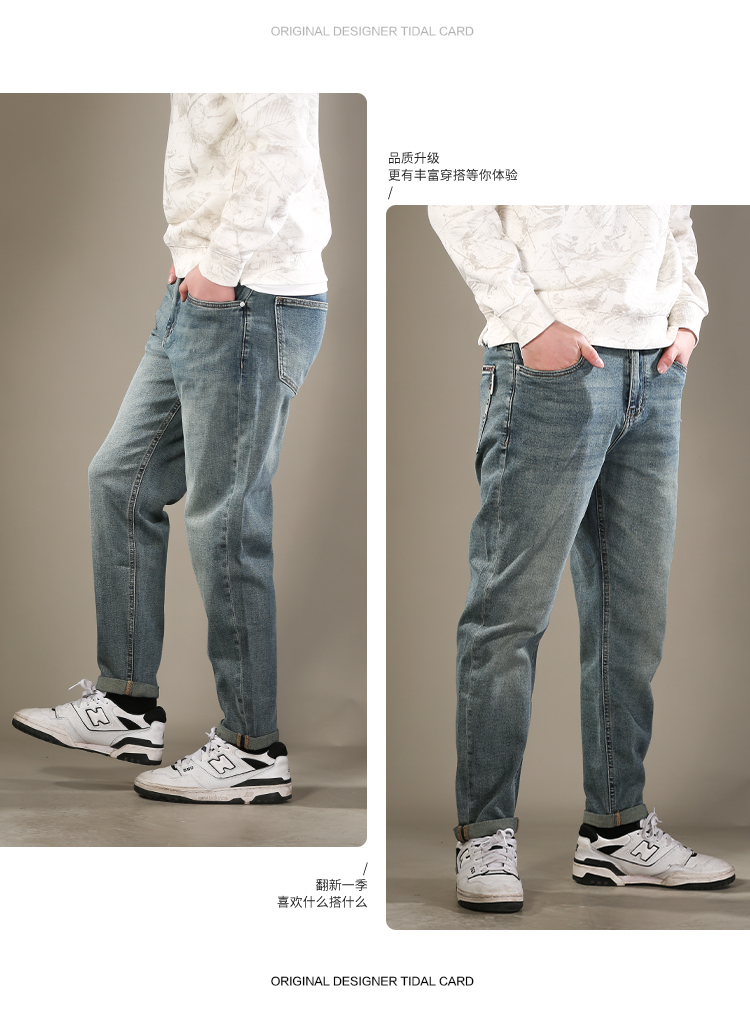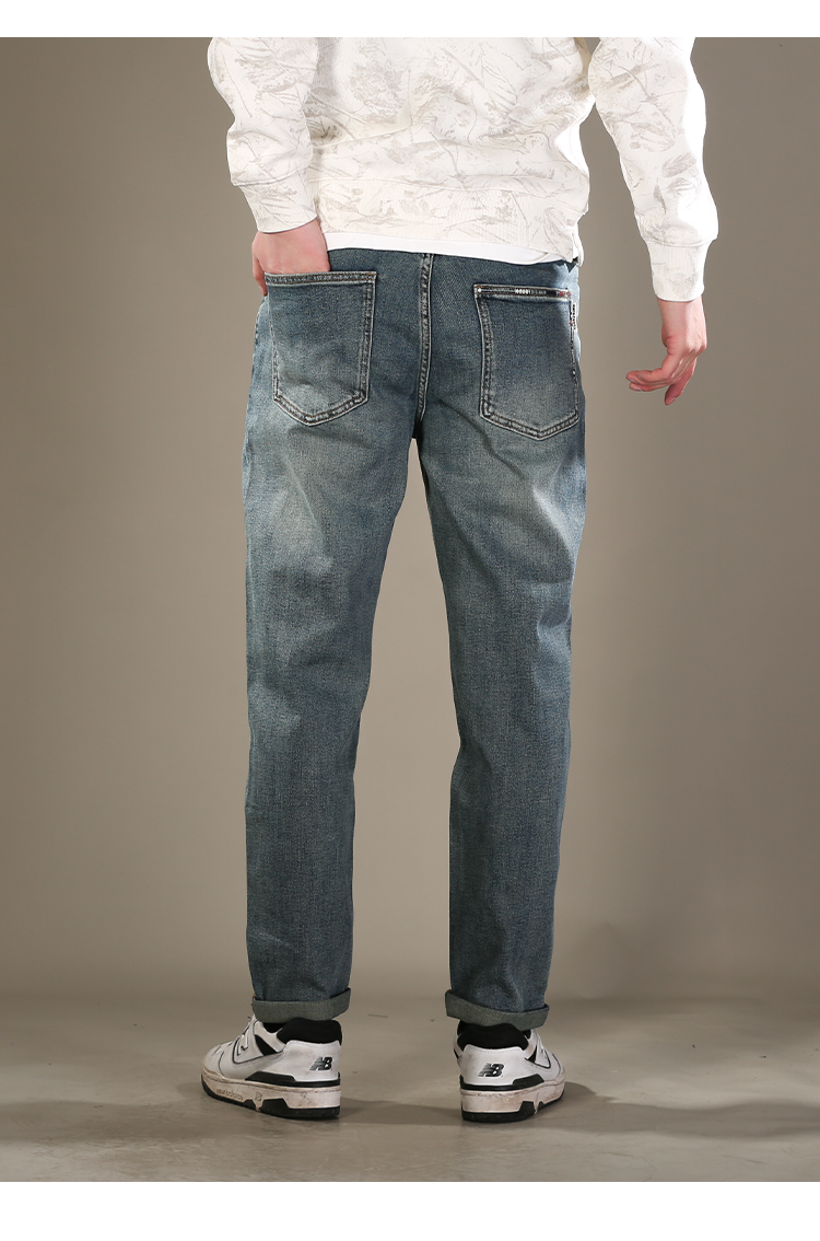 DRONKOO 2026 正常腰表袋拼接右后袋白蓝棕绣线中厚牛仔长裤