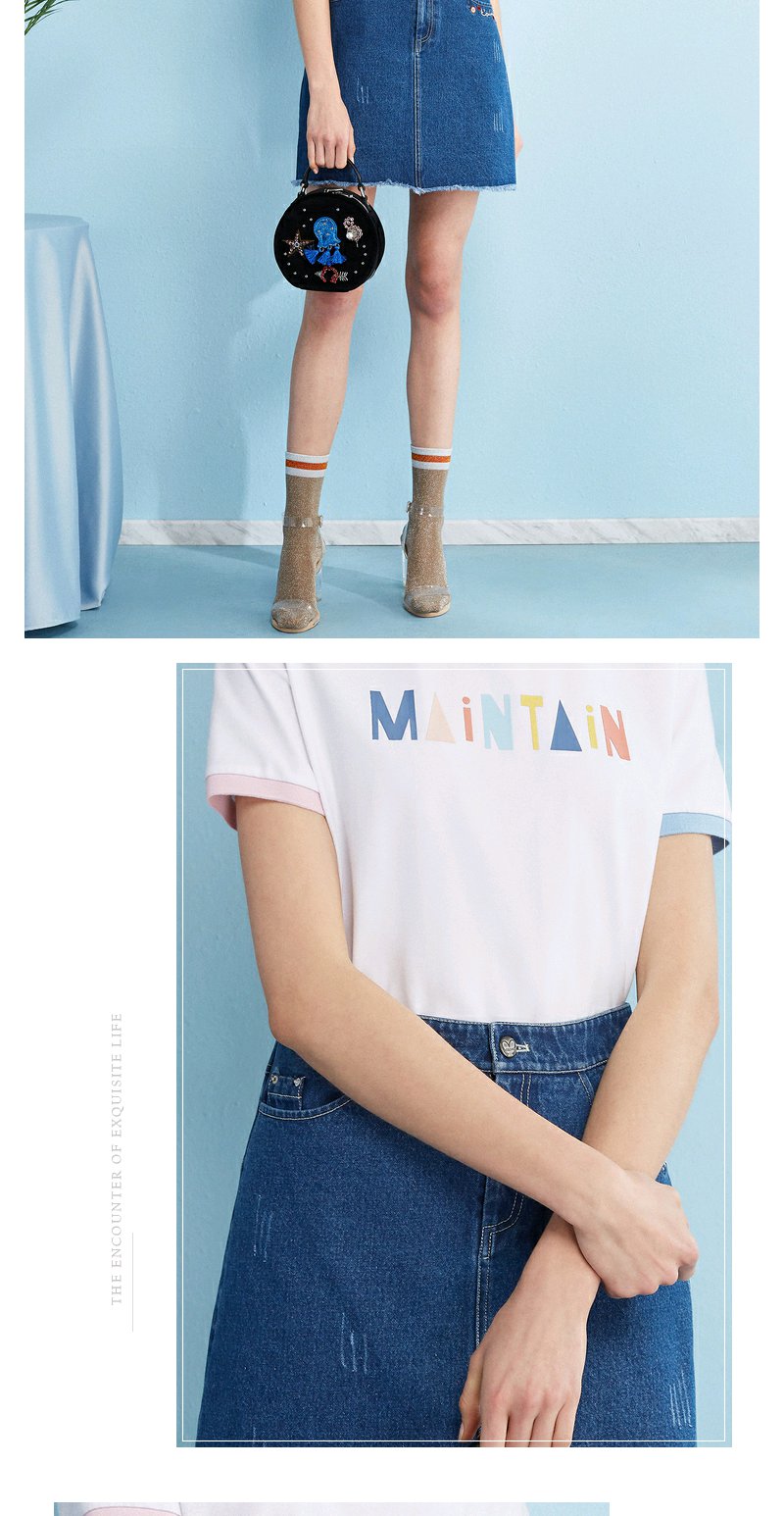 欧芮儿圆领短袖白色t恤刺绣上衣