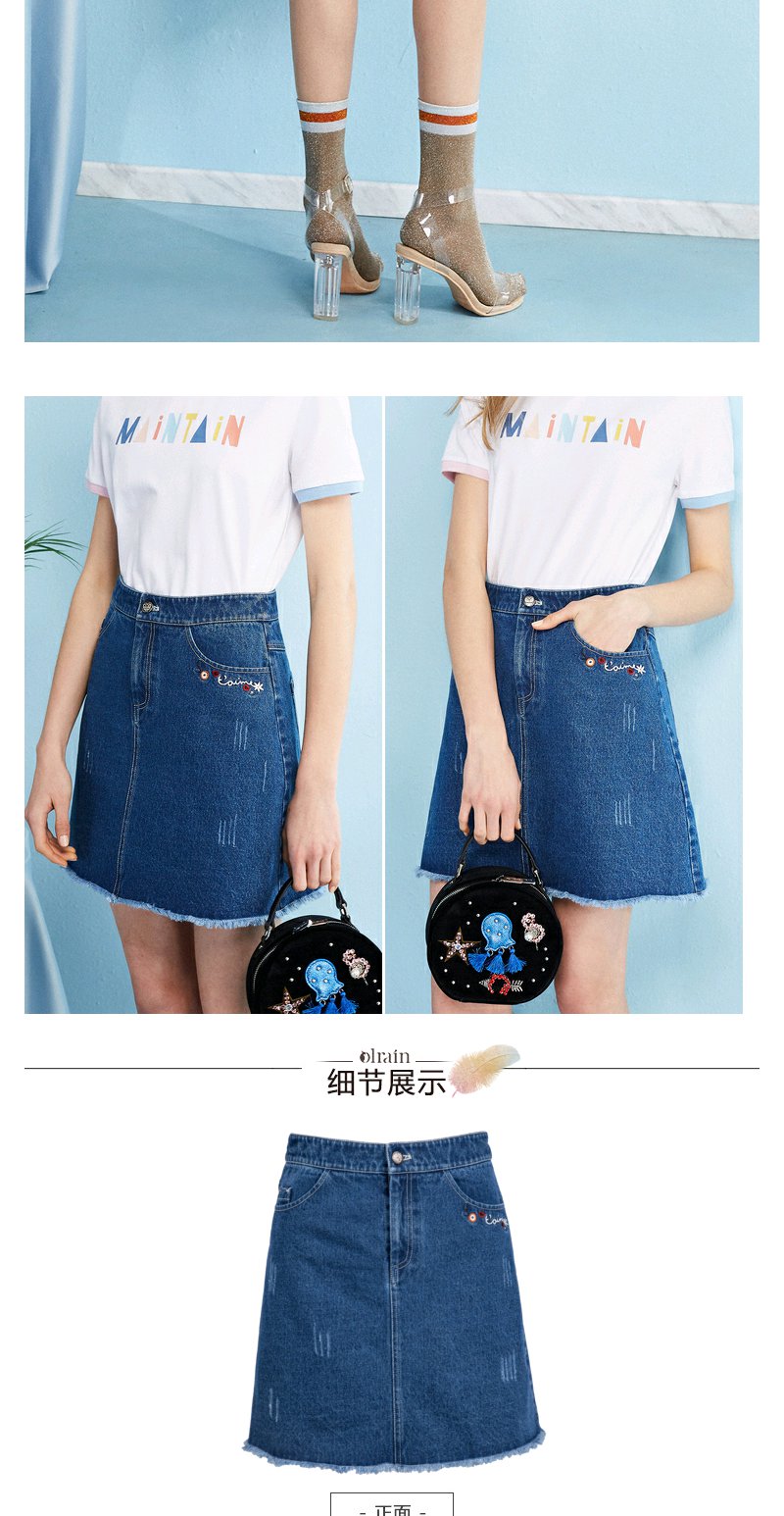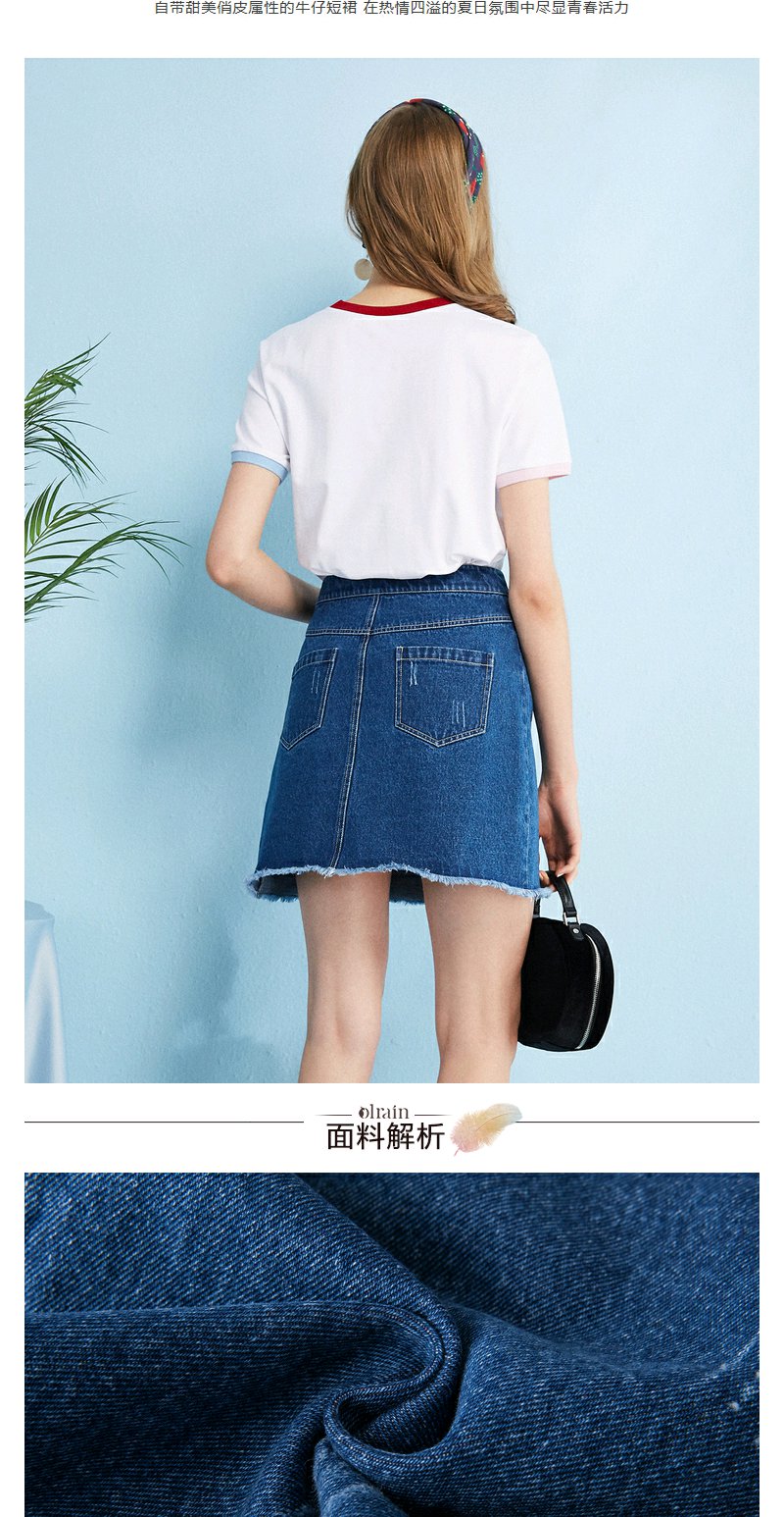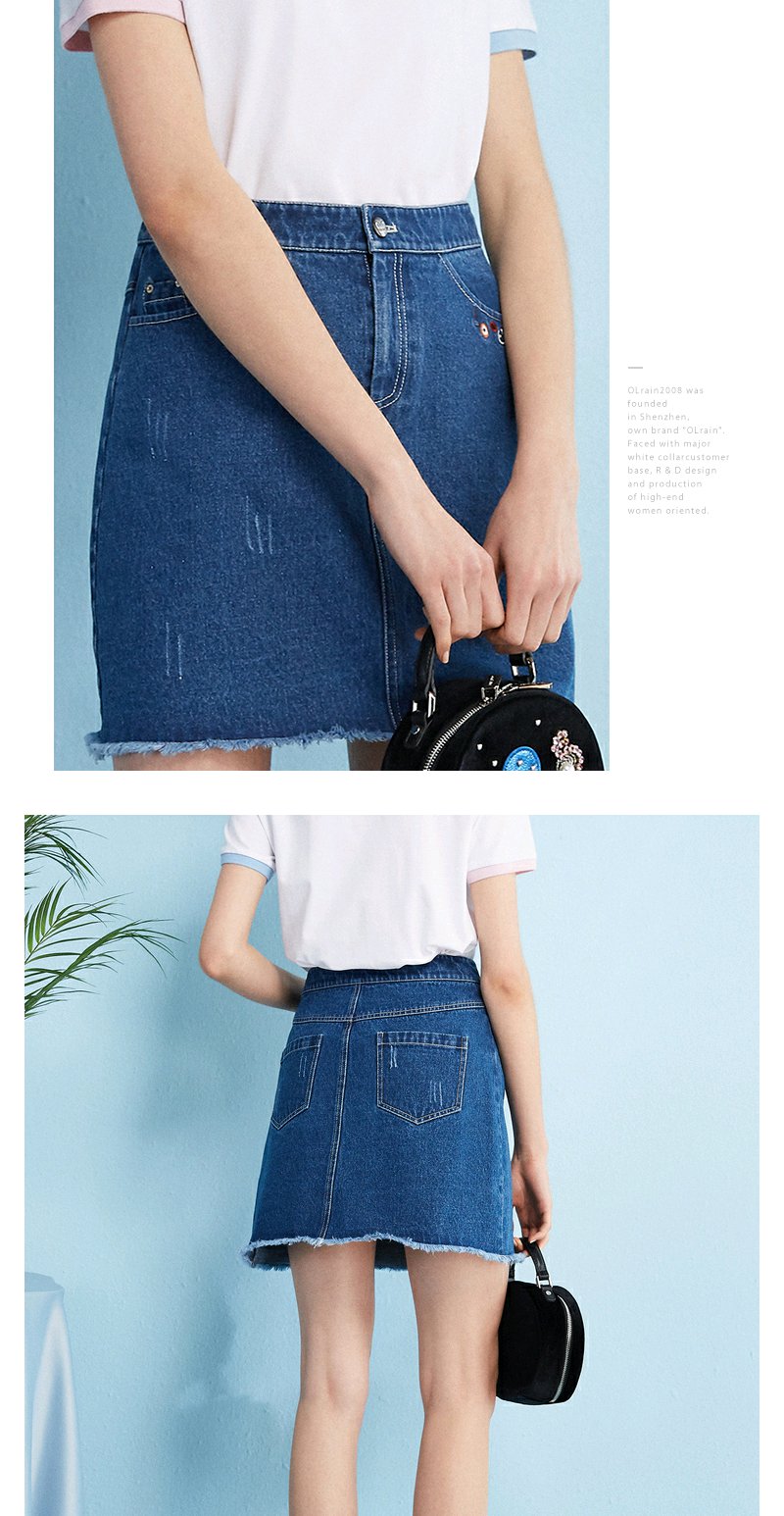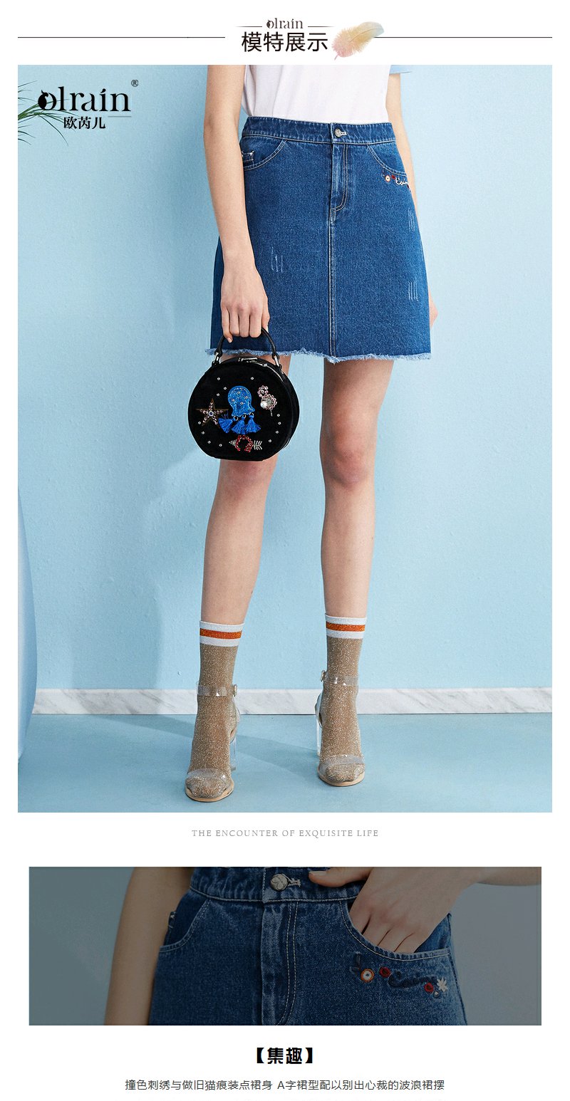 欧芮儿秋装女新款收腰显瘦a字裙女蓝色牛仔半身裙女短裙子
