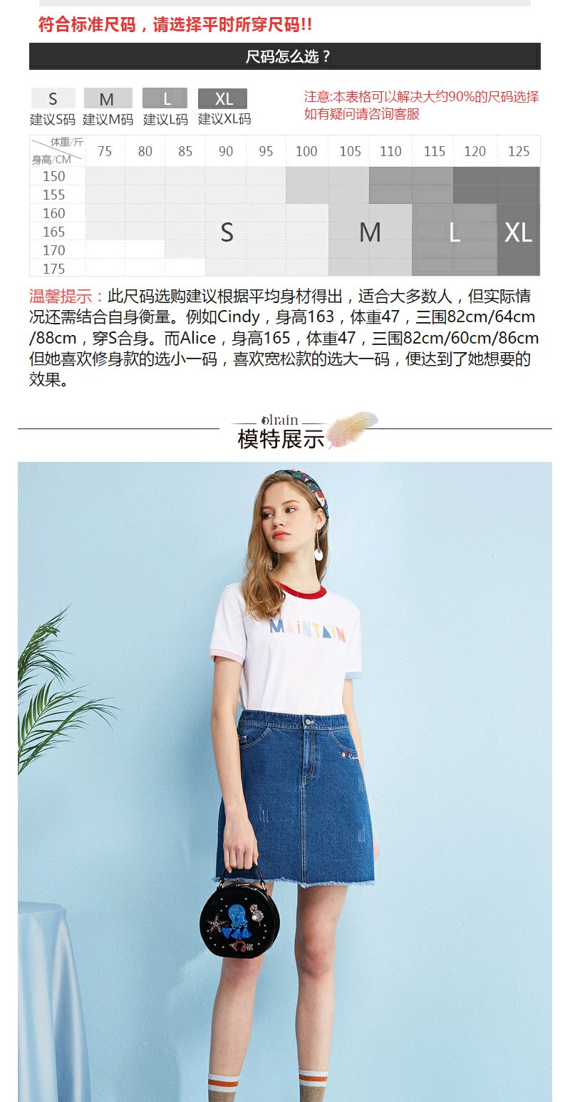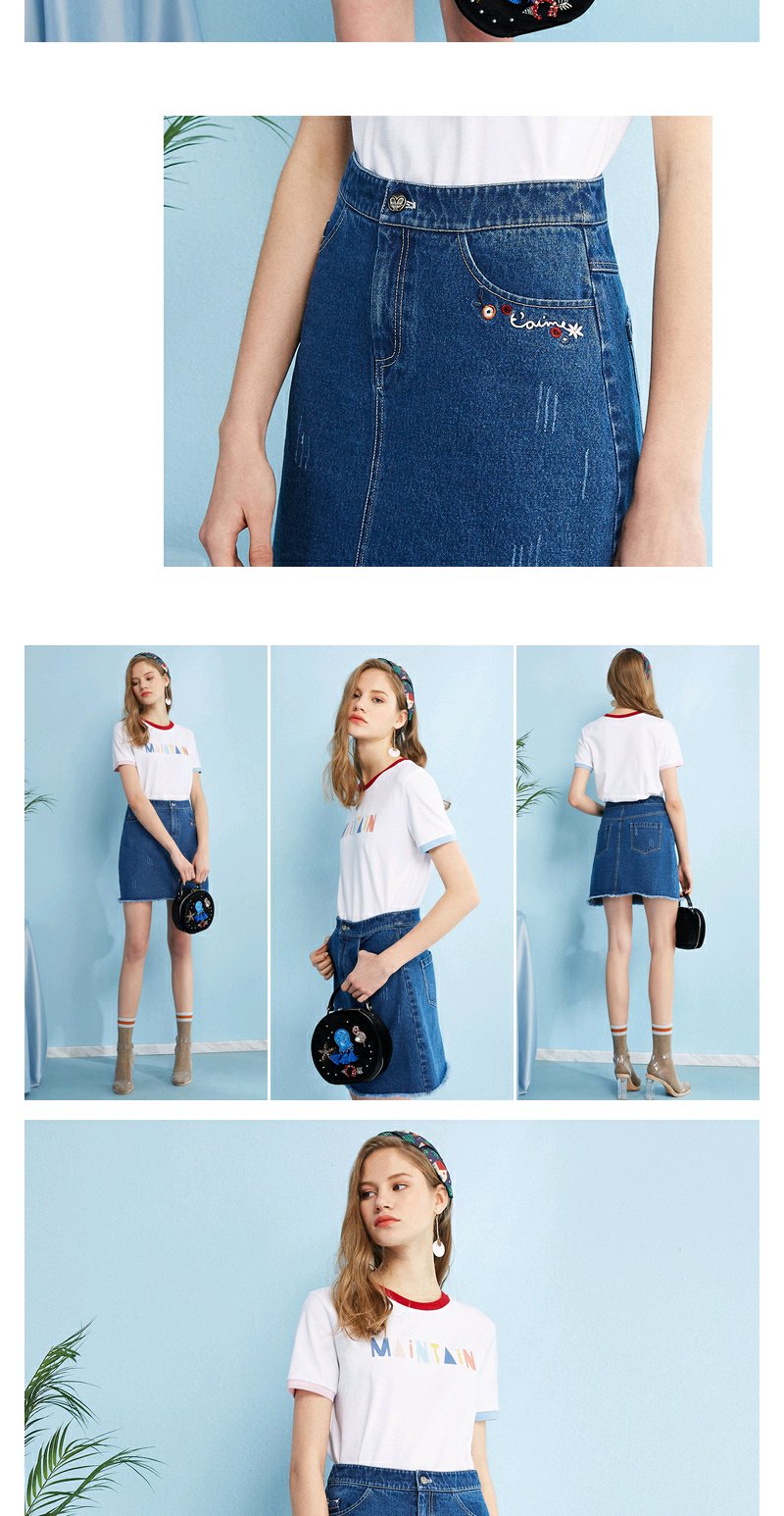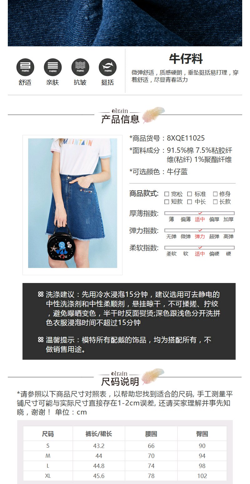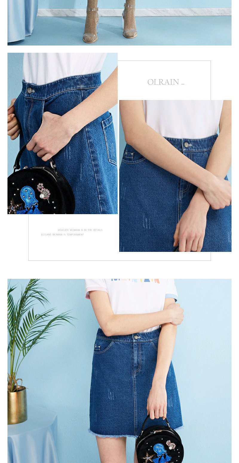 欧芮儿秋装女新款收腰显瘦a字裙女蓝色牛仔半身裙女短裙子