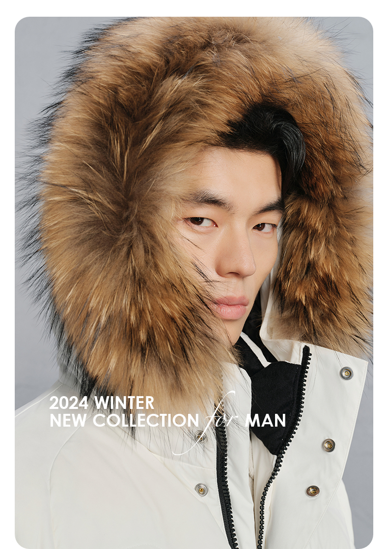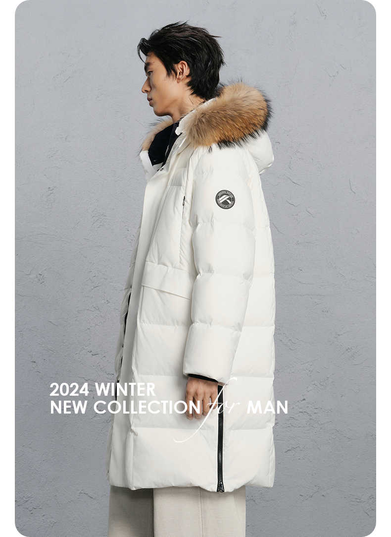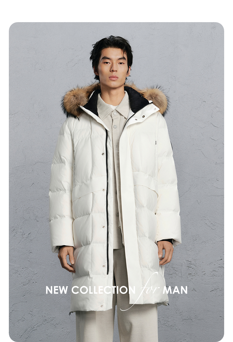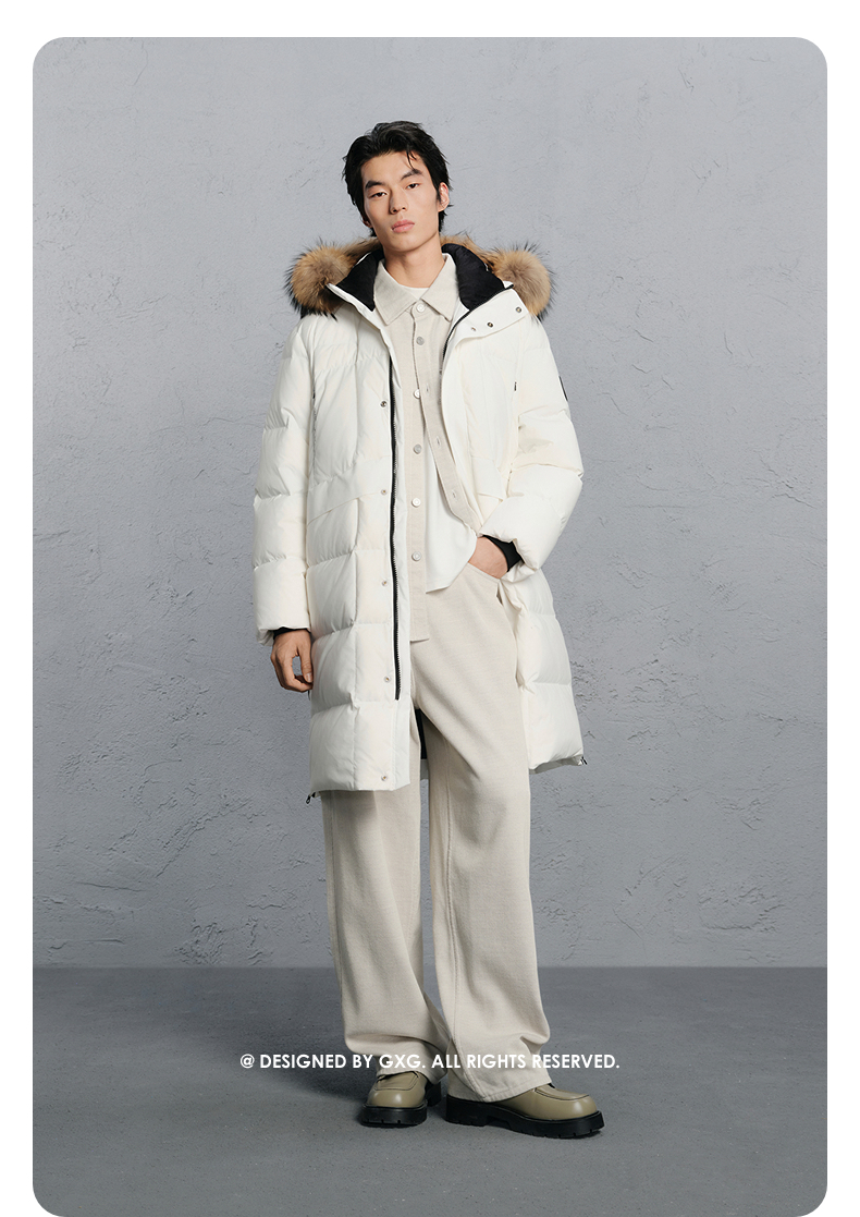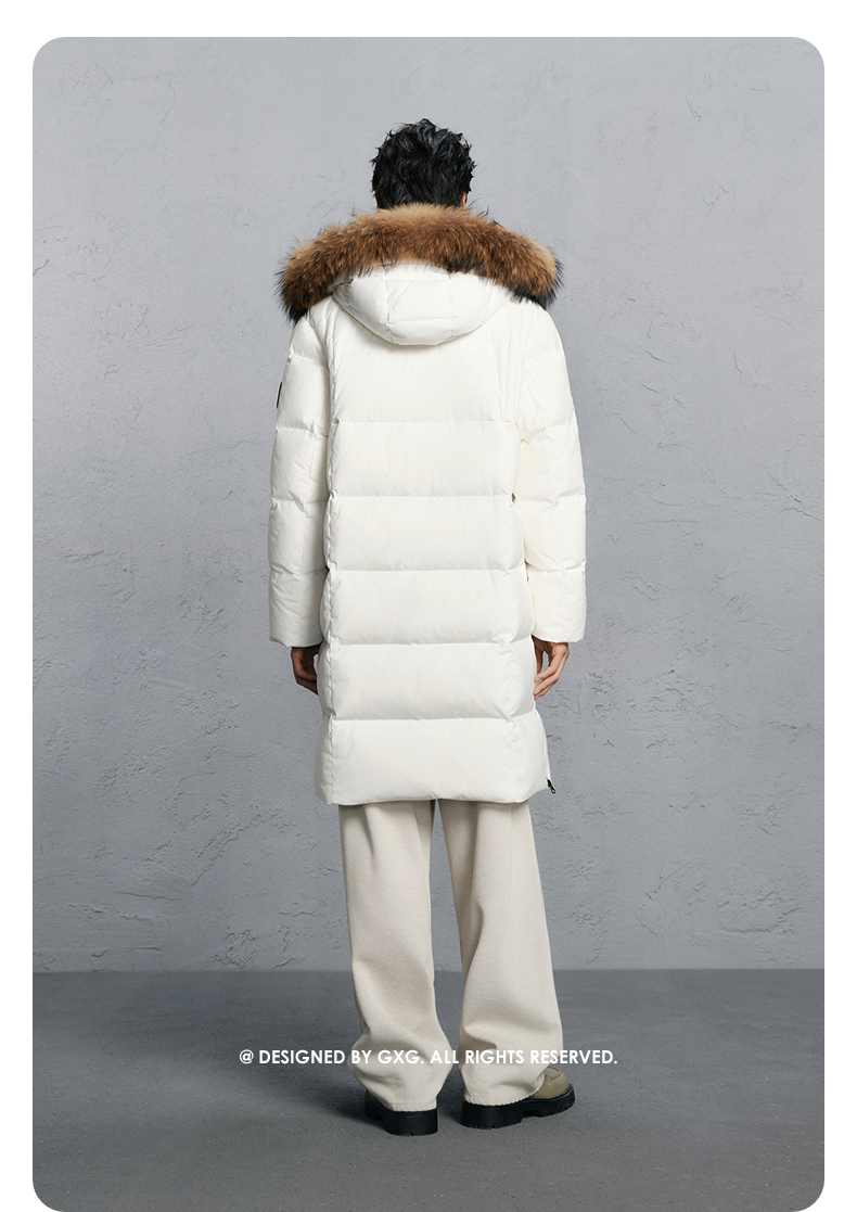GXG男装 大毛领简约长款通勤羽绒服男24冬热卖G24XY14005