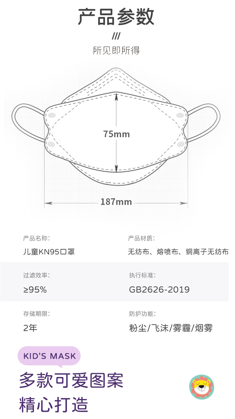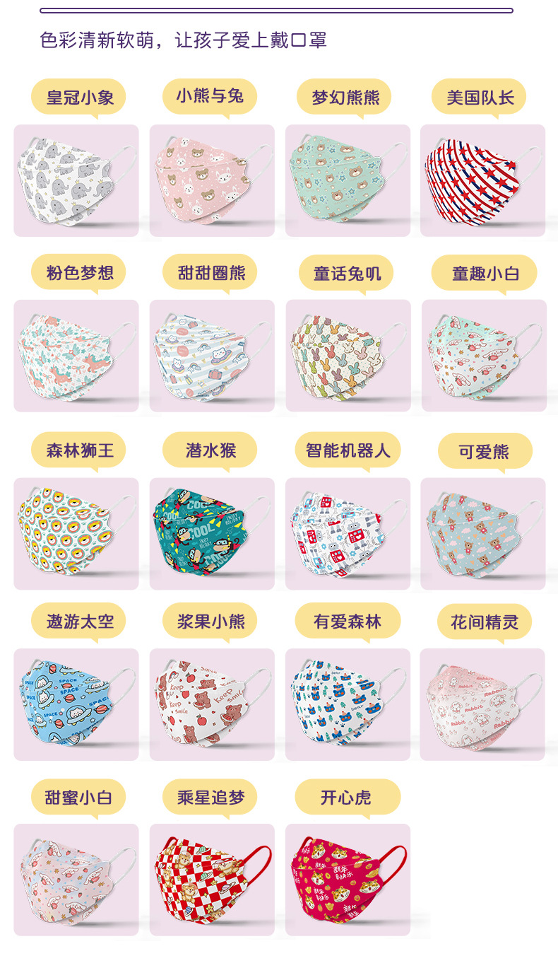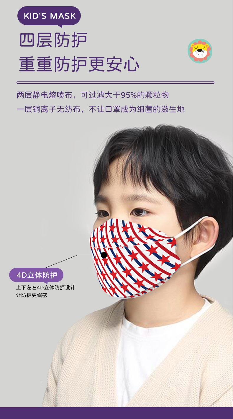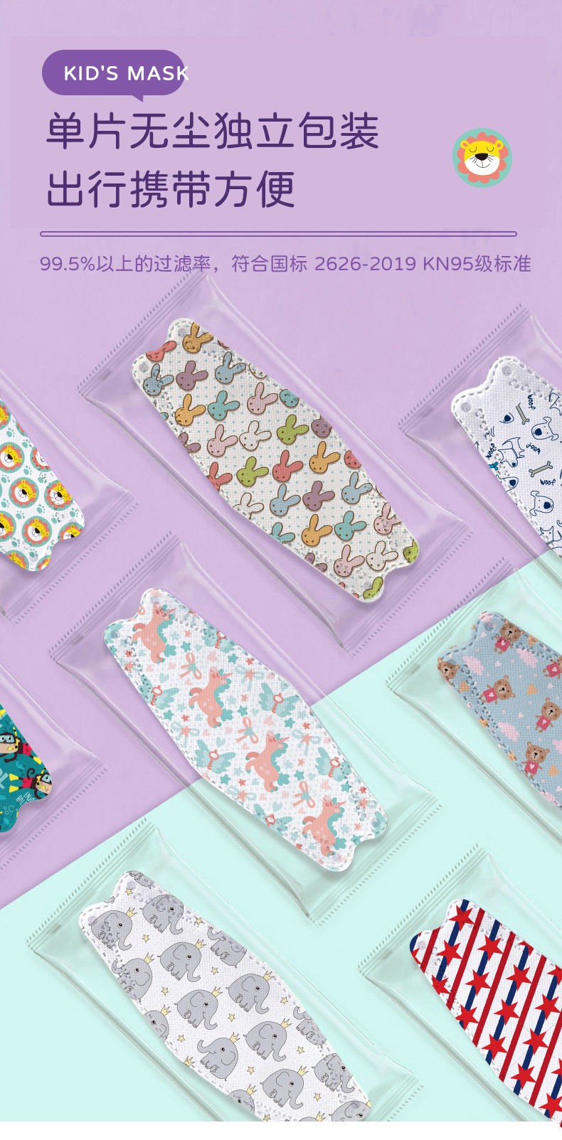 【39元30个 可任选3包新年KN95口罩】卫普盾儿童口罩4-12岁儿童专用立体防护口罩 四层防护/亲肤舒适/多重防护 独立包装 卡通口罩