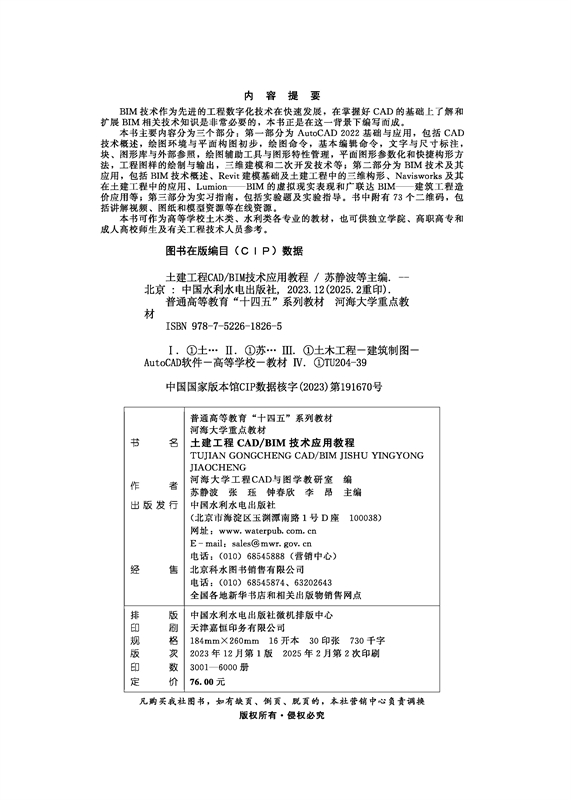 土建工程CAD/BIM技术应用教程(普通高等教育“十四五”系列教材 河海大学重点教材)
