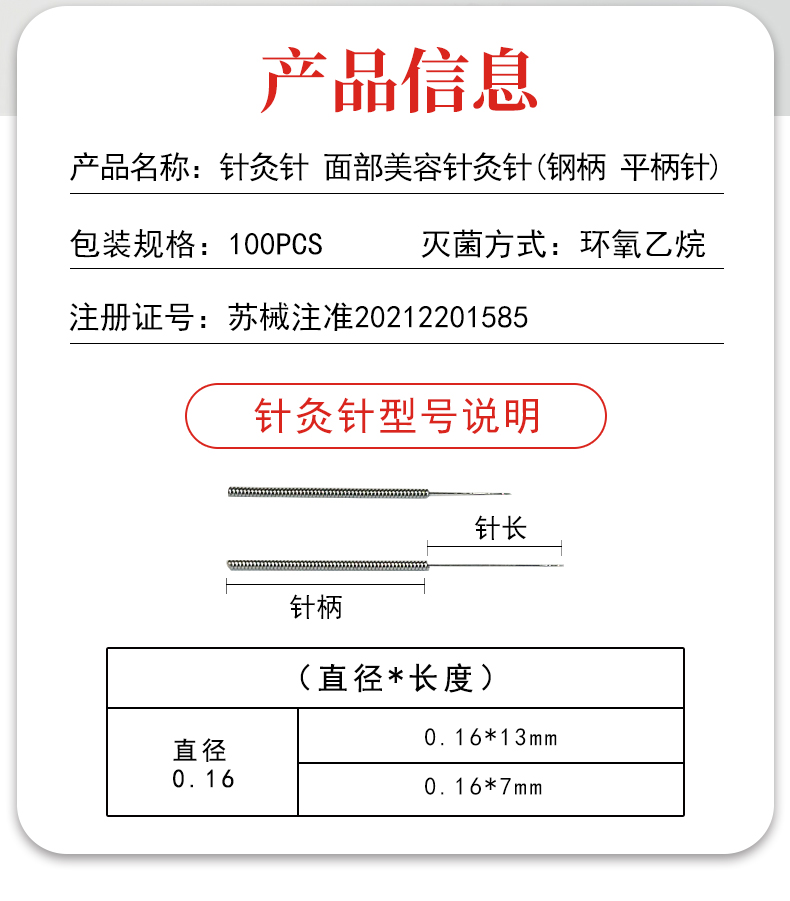 智象针灸针 面部美容针灸针 钢柄平柄针 100支装