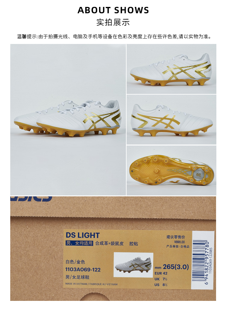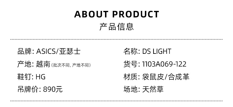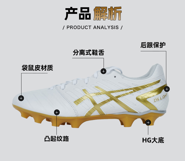 SFS亚瑟士DS LIGHT高端HG短钉袋鼠皮宽脚人草足球鞋1103A069-122