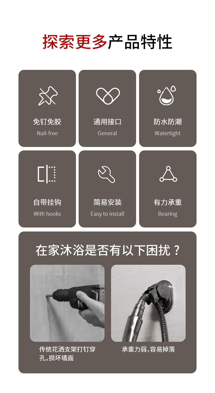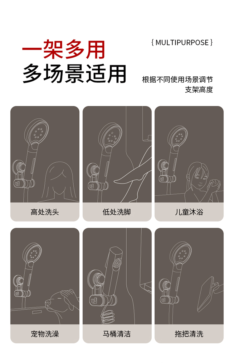 FaSoLa吸盘花洒支架家用花洒架固定神器免打孔喷头儿童可移动调节