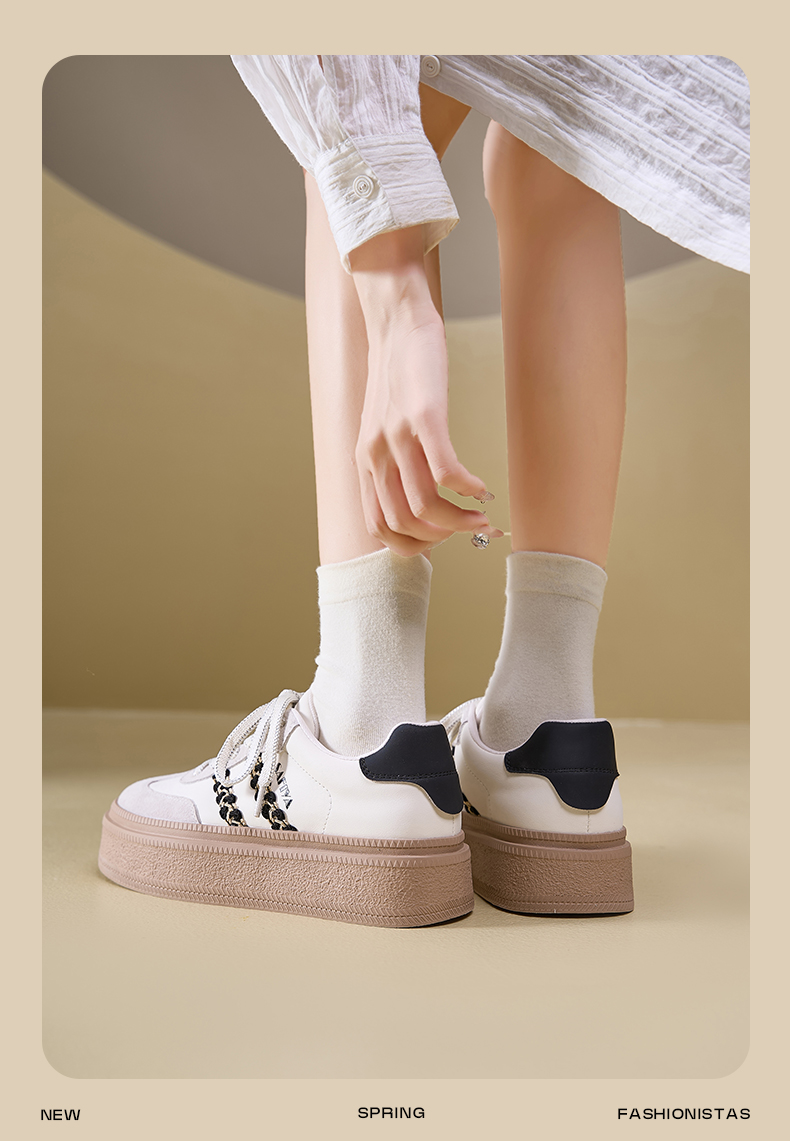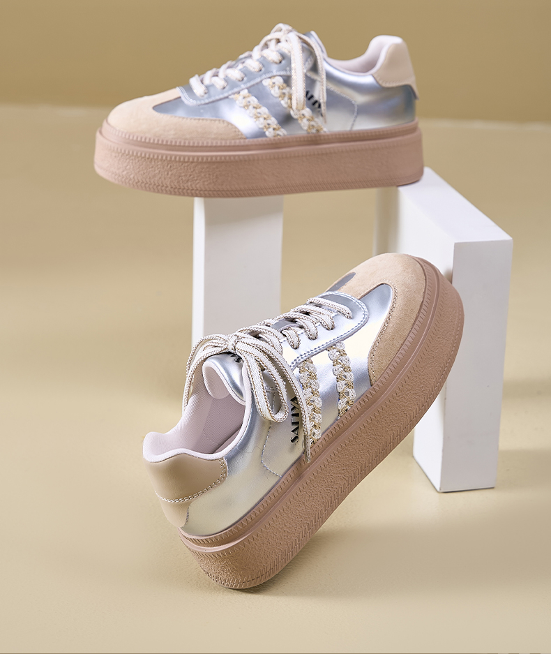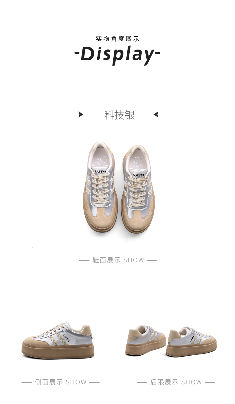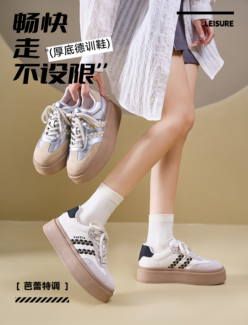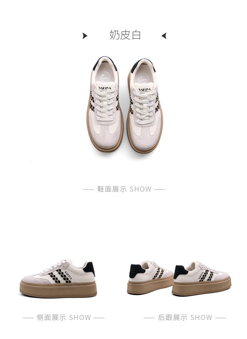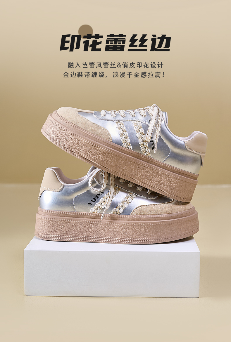 Safiya/索菲娅2025春蕾丝边芭蕾风拼色复古透气百搭厚底德训鞋 SFD1112025
