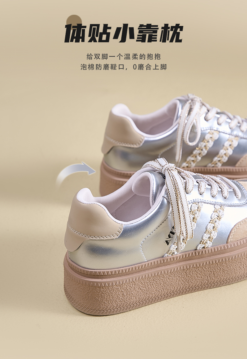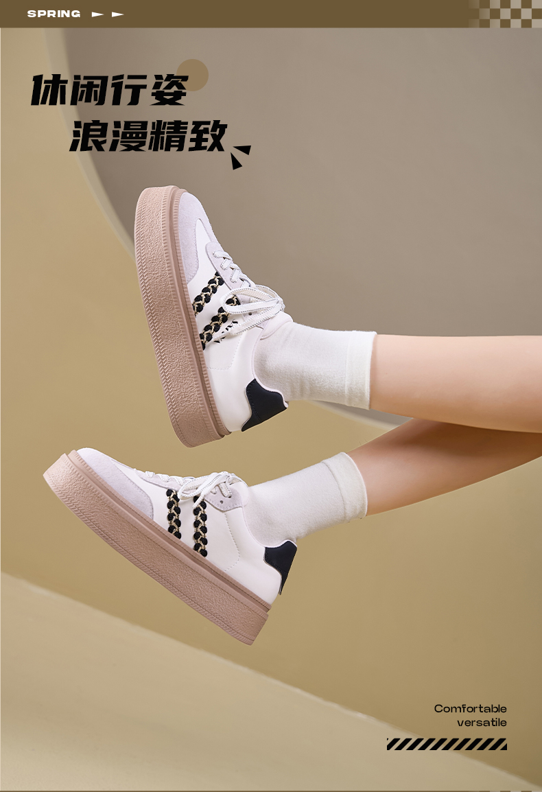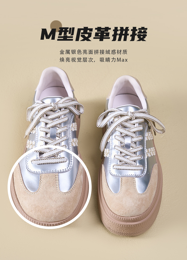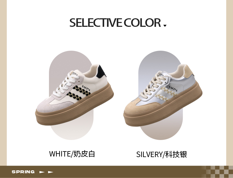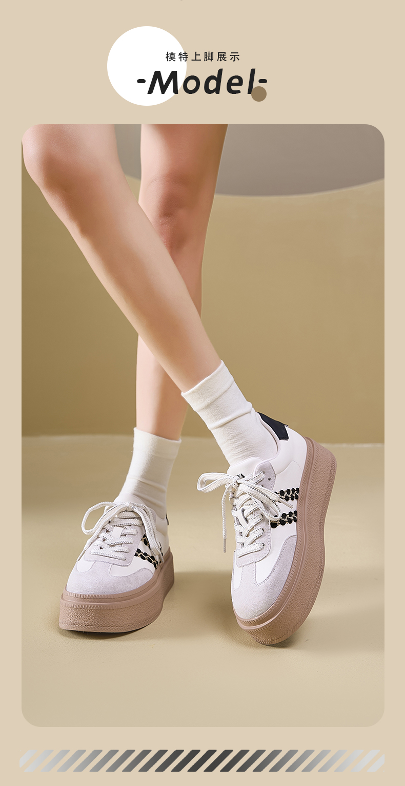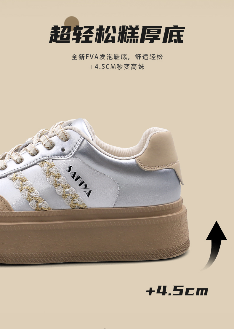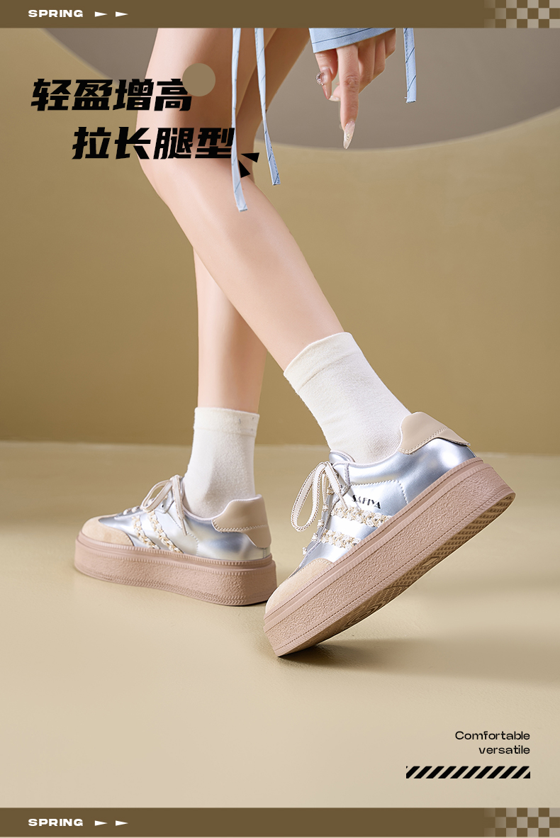 Safiya/索菲娅2025春蕾丝边芭蕾风拼色复古透气百搭厚底德训鞋 SFD1112025
