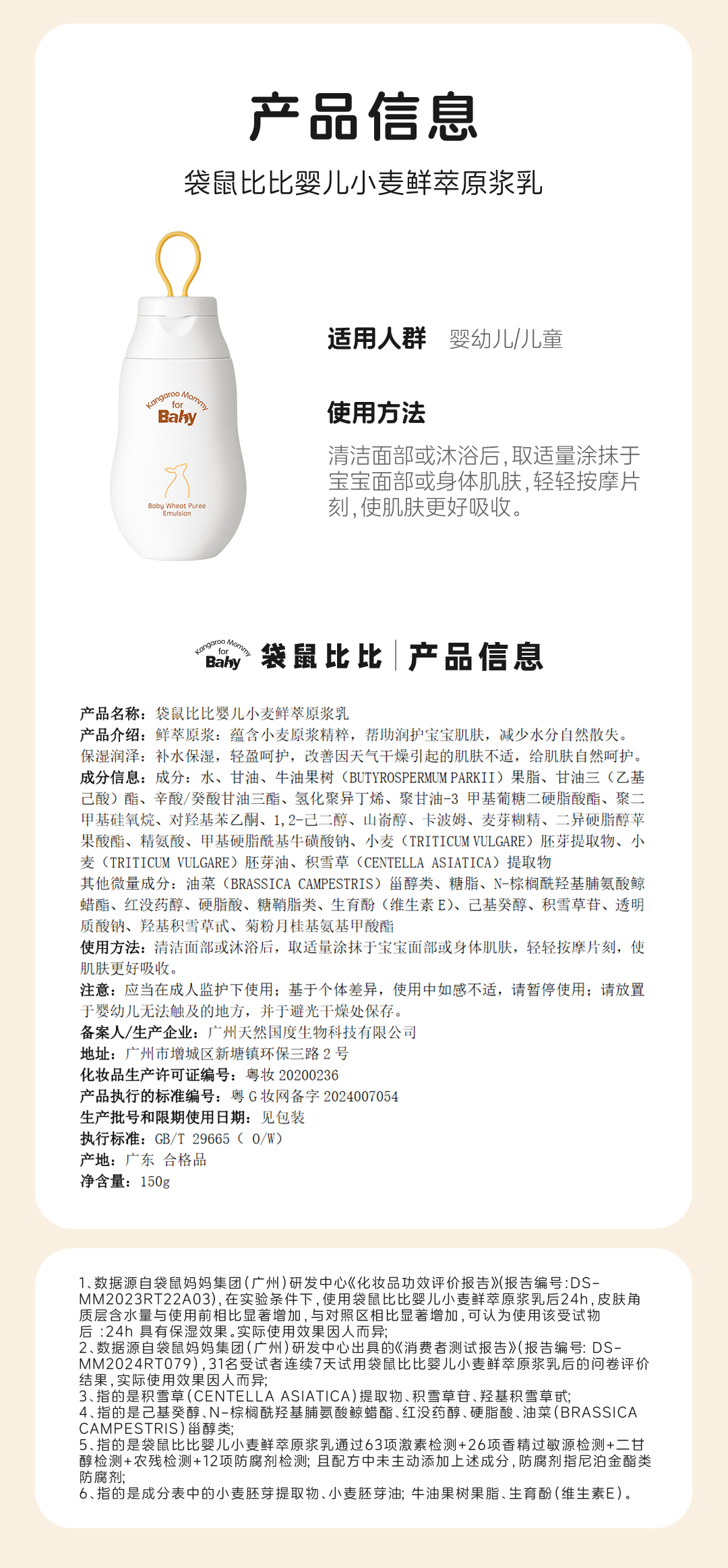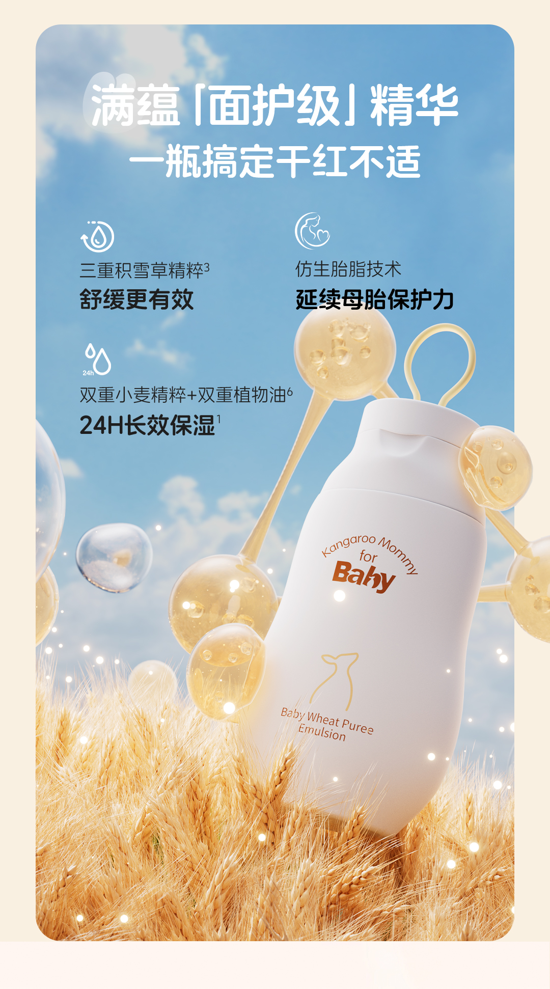 【婴儿身体乳】清爽质地夏日宝宝身体乳 呵护宝宝肌肤屏障 婴儿小麦鲜萃原浆乳(150g)