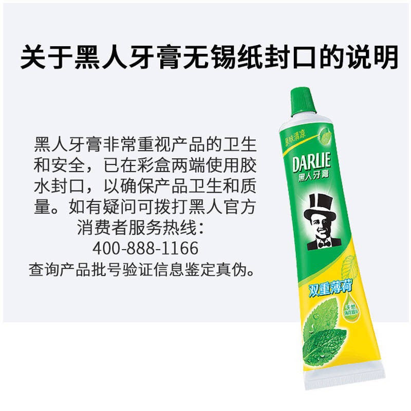 黑人(DARLIE)双重薄荷牙膏实惠家庭套装防蛀固齿 清新口气 双重薄荷175g*2 日用品