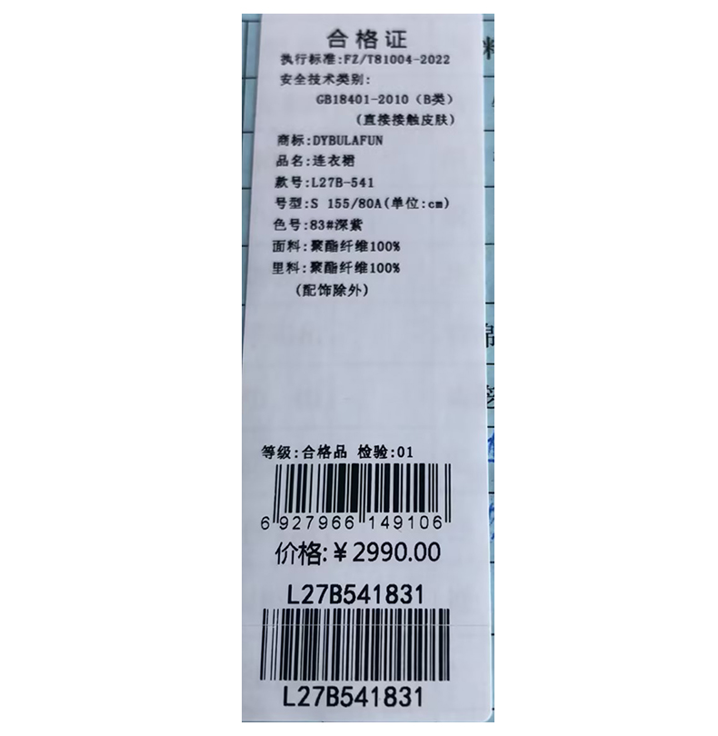 戴布拉芬连衣裙L27B541
