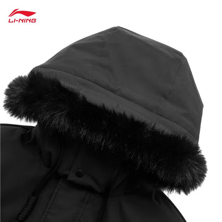 李宁男子冬季中款毛领羽绒服外套AYMU361-1