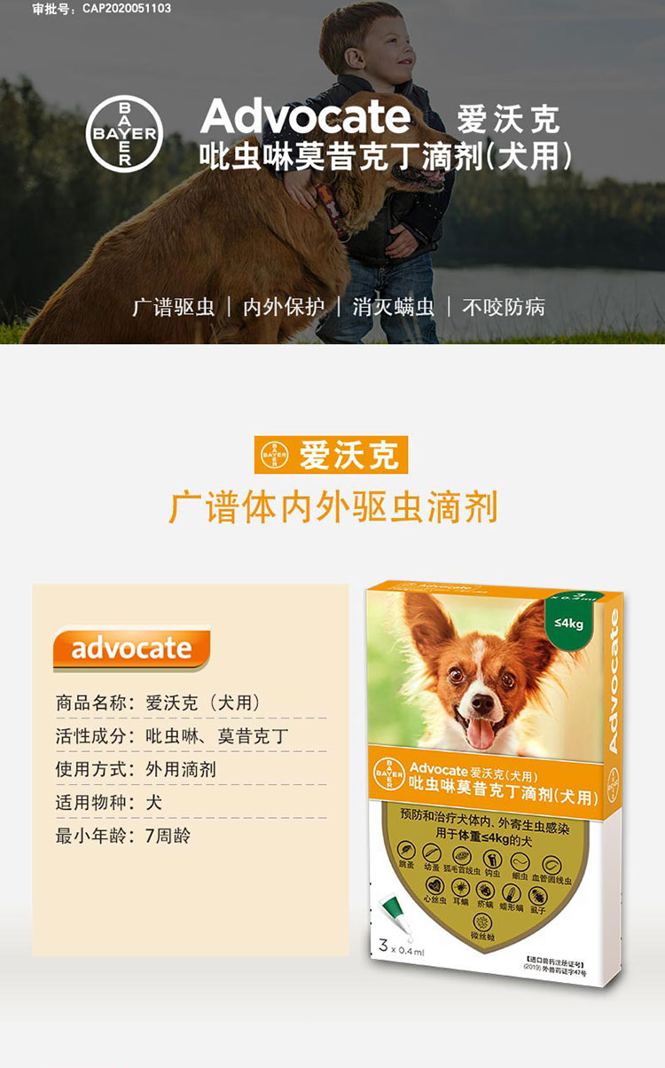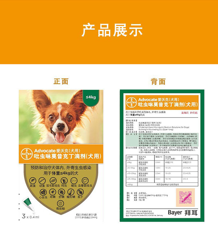 拜耳爱沃克体内外驱虫滴剂大型犬宠物狗狗驱虫子药品狗用跳蚤虱螨