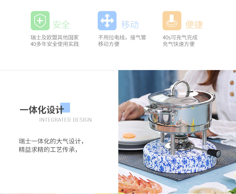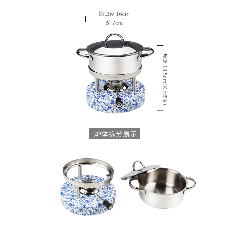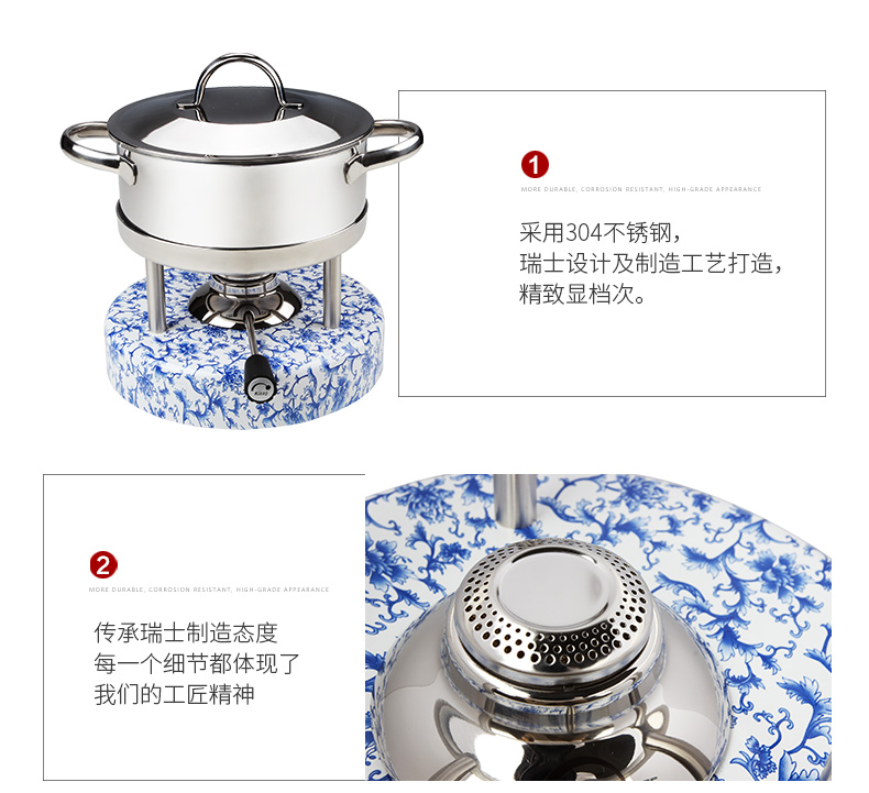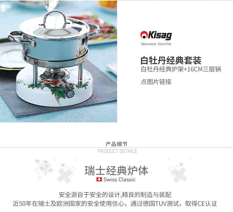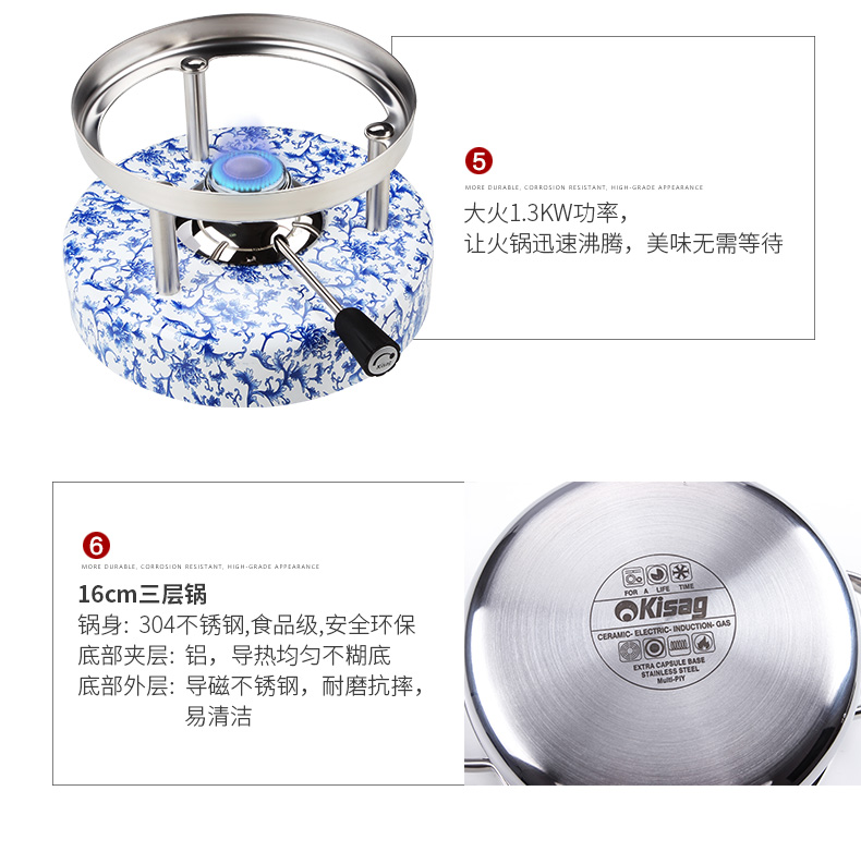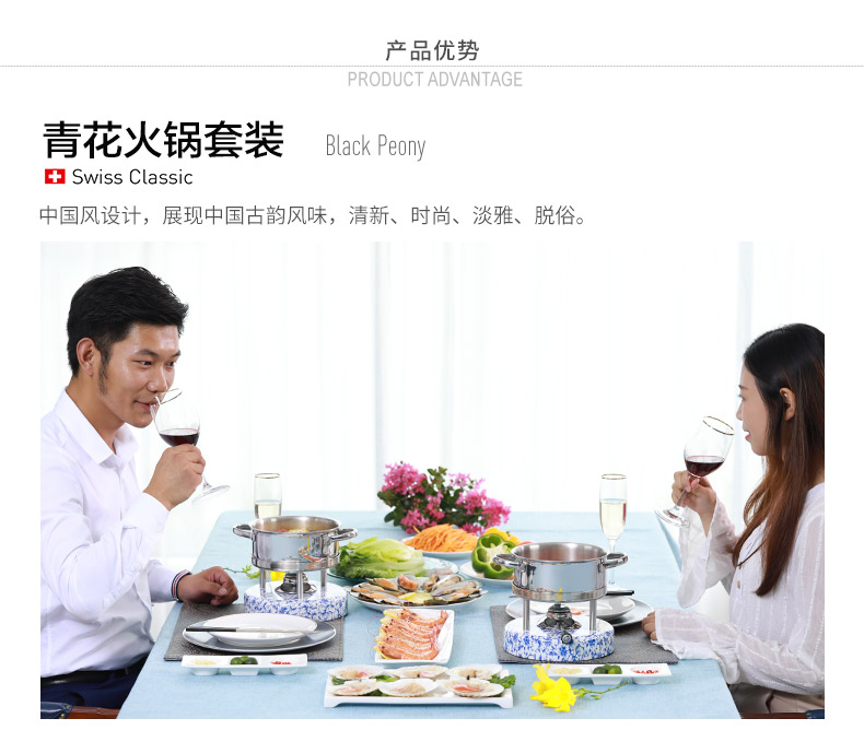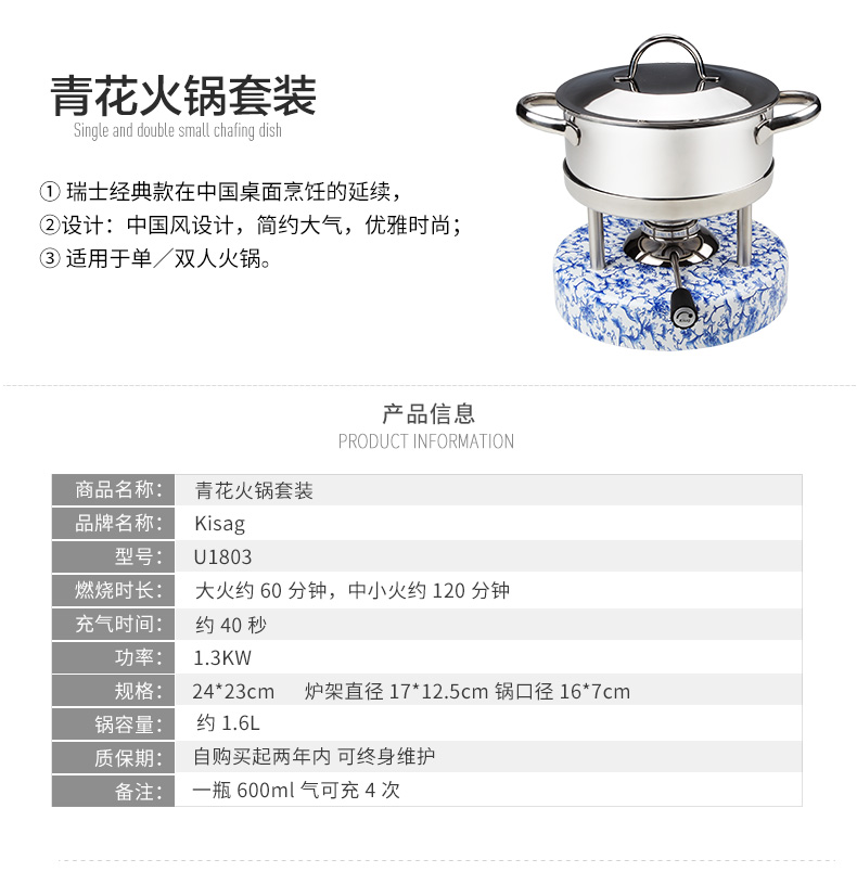 瑞士Kisag瓦氏炉青花 牡丹中国风火锅套装酒店会所家用小火锅