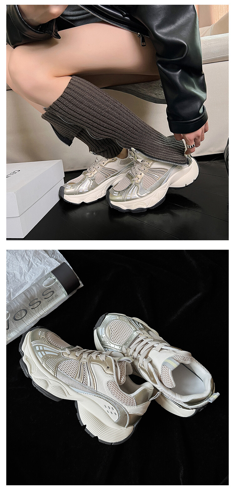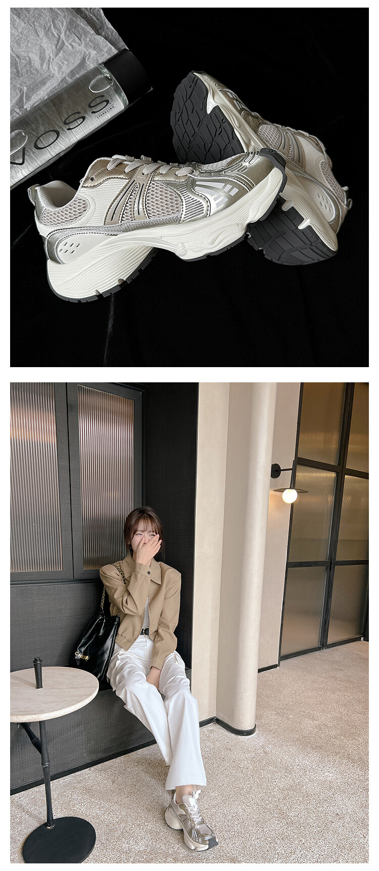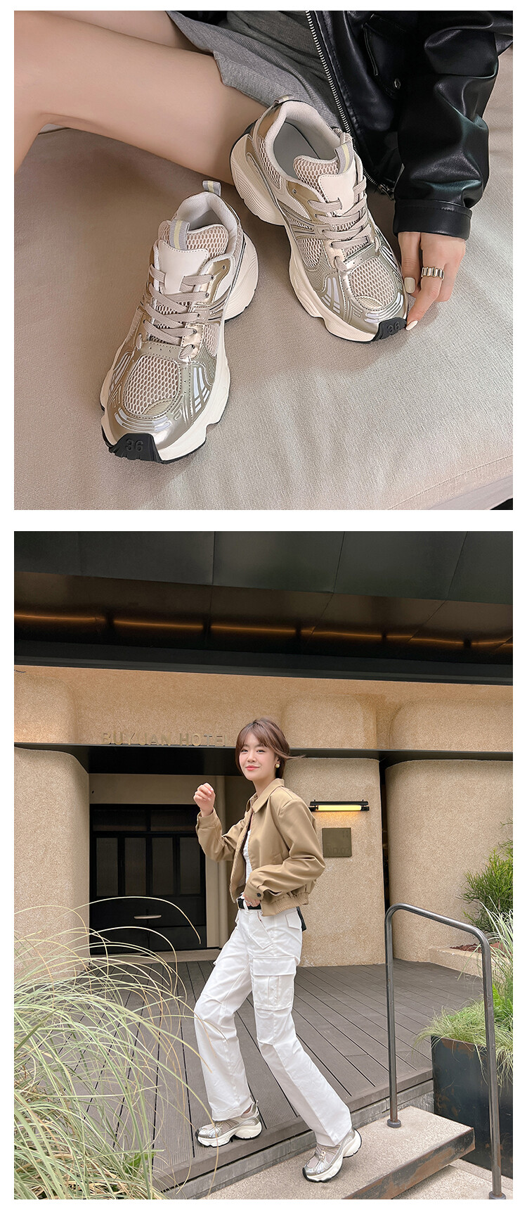 西村名物2023年秋季新款厚底拼色运动鞋圆头潮流百搭老爹鞋D23CM32551