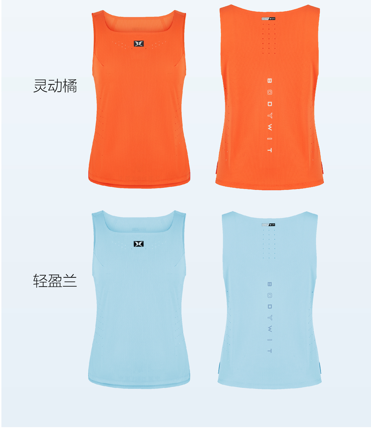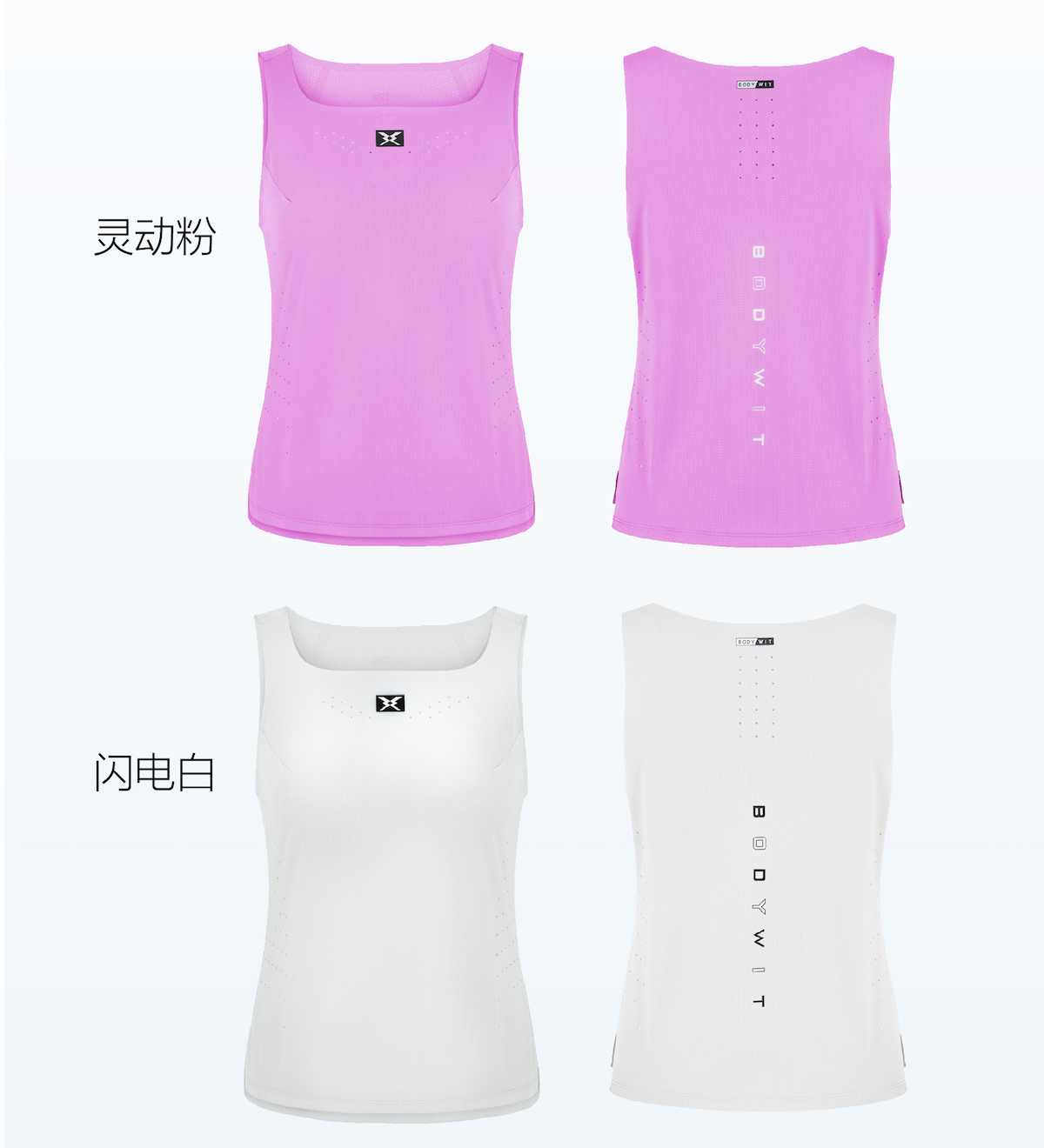 BODYWIT身体智慧飞天女速干时尚超轻网眼跑步健身无袖 T恤