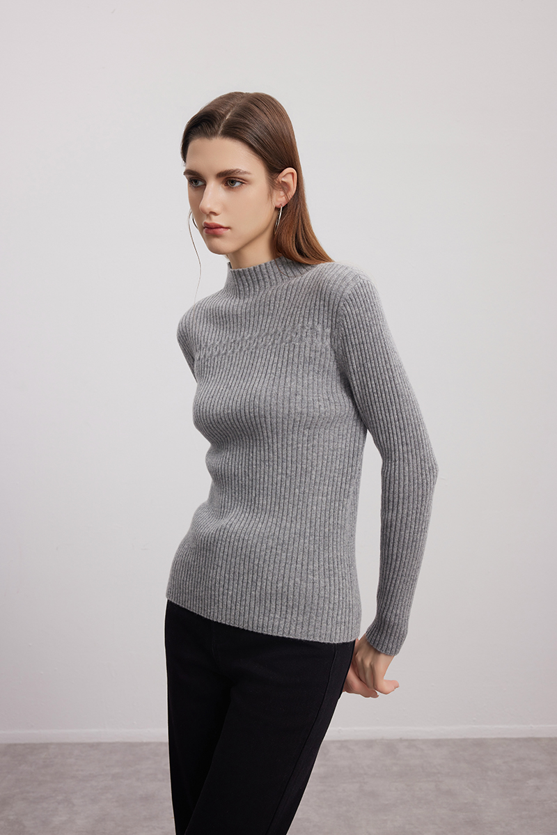 【半高领坑条纹羊绒衫】羊绒世家秋冬新品女士100%山羊绒内搭修身保暖毛衣