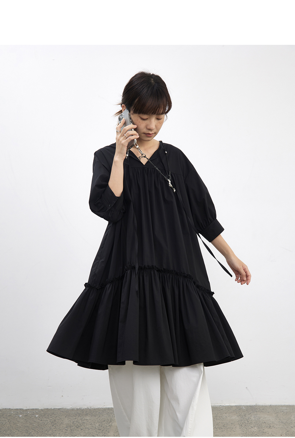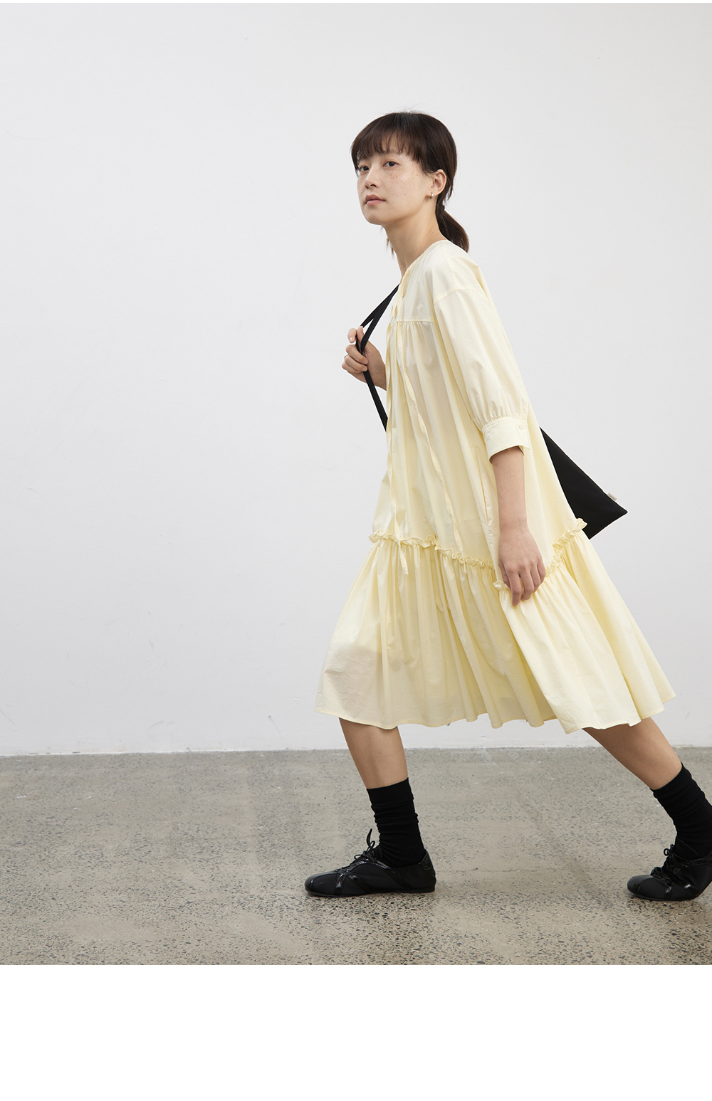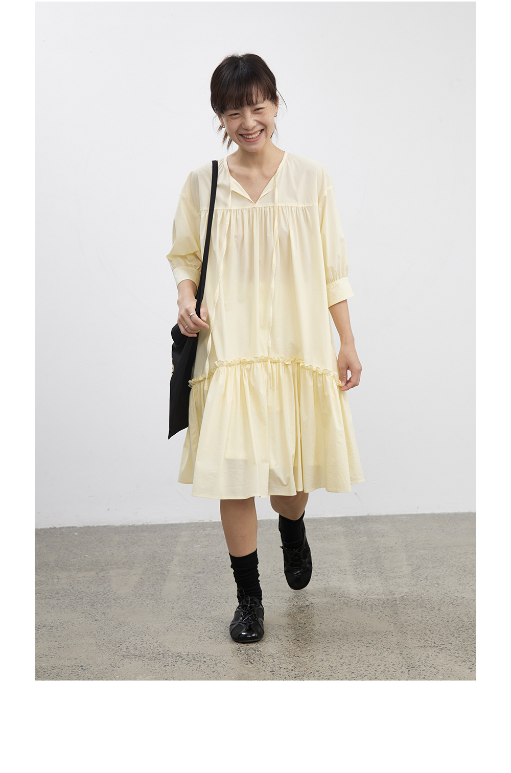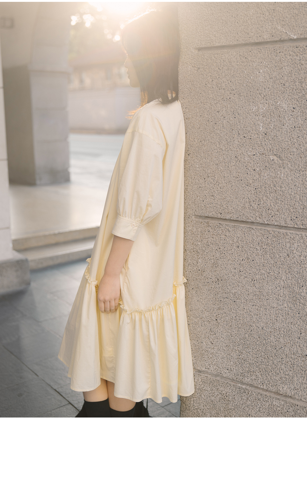 步履不停/5B31168C/7分袖下摆花边连衣裙