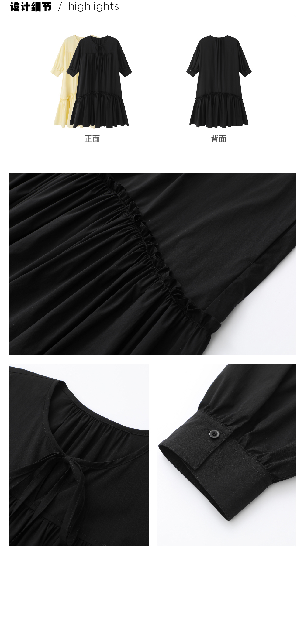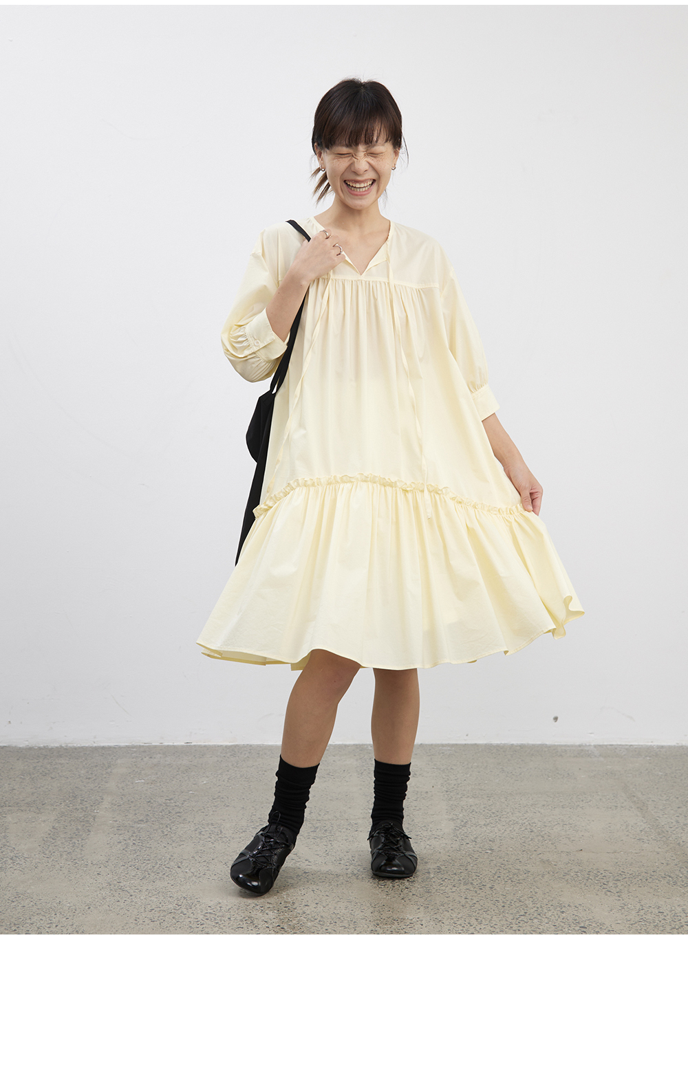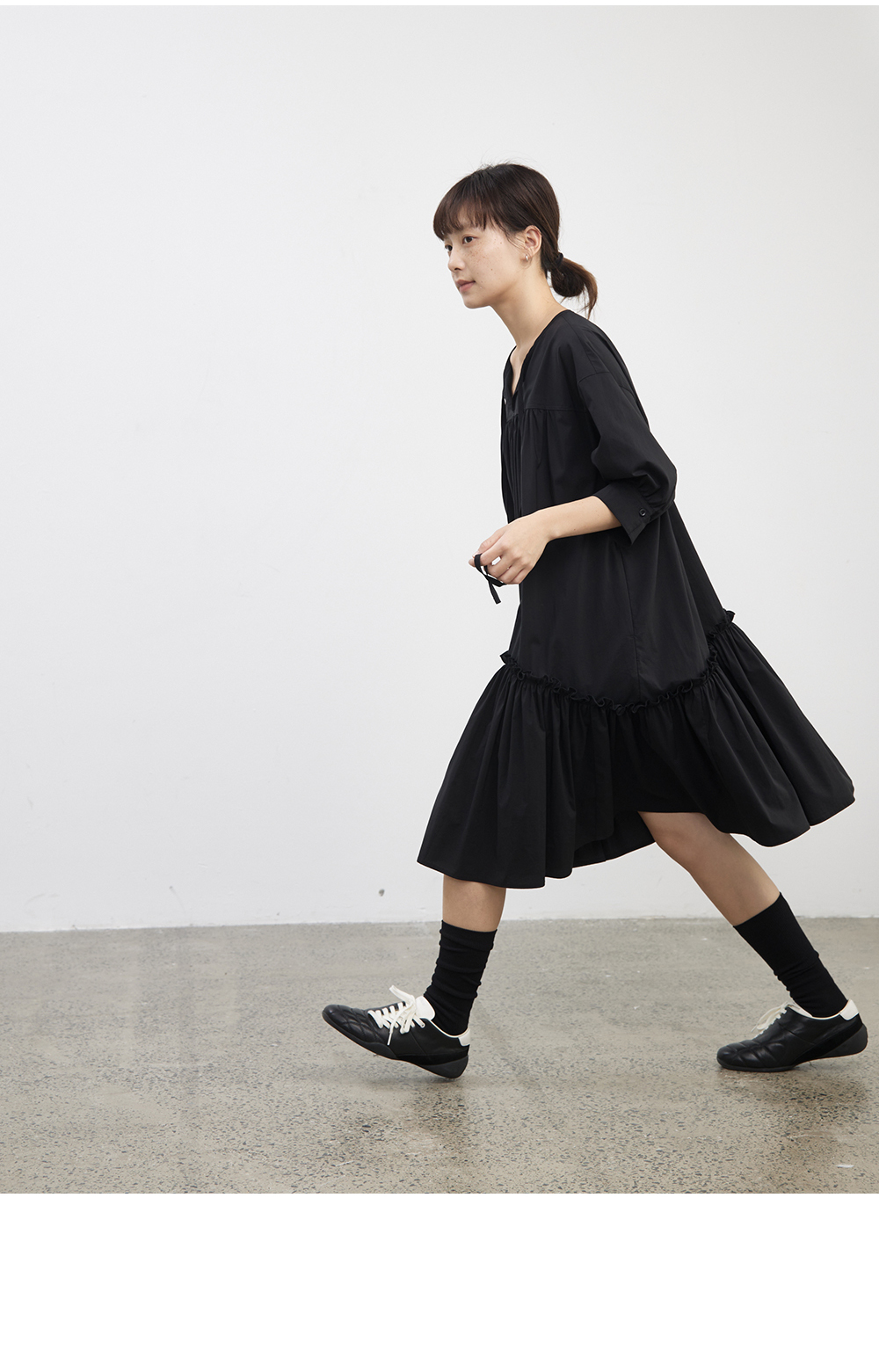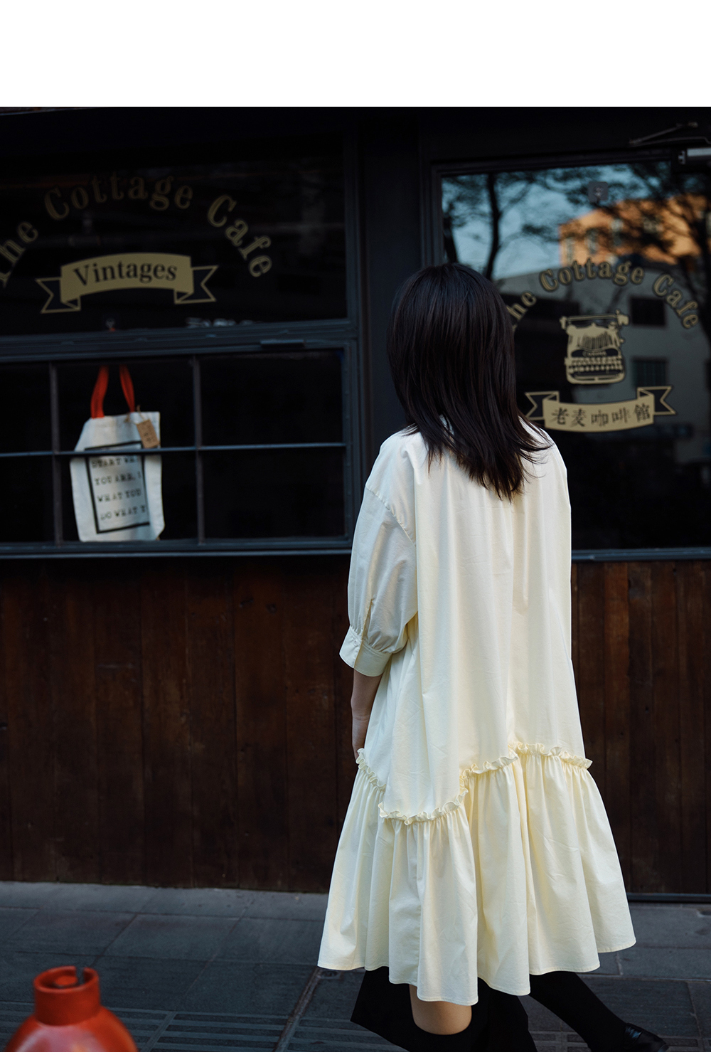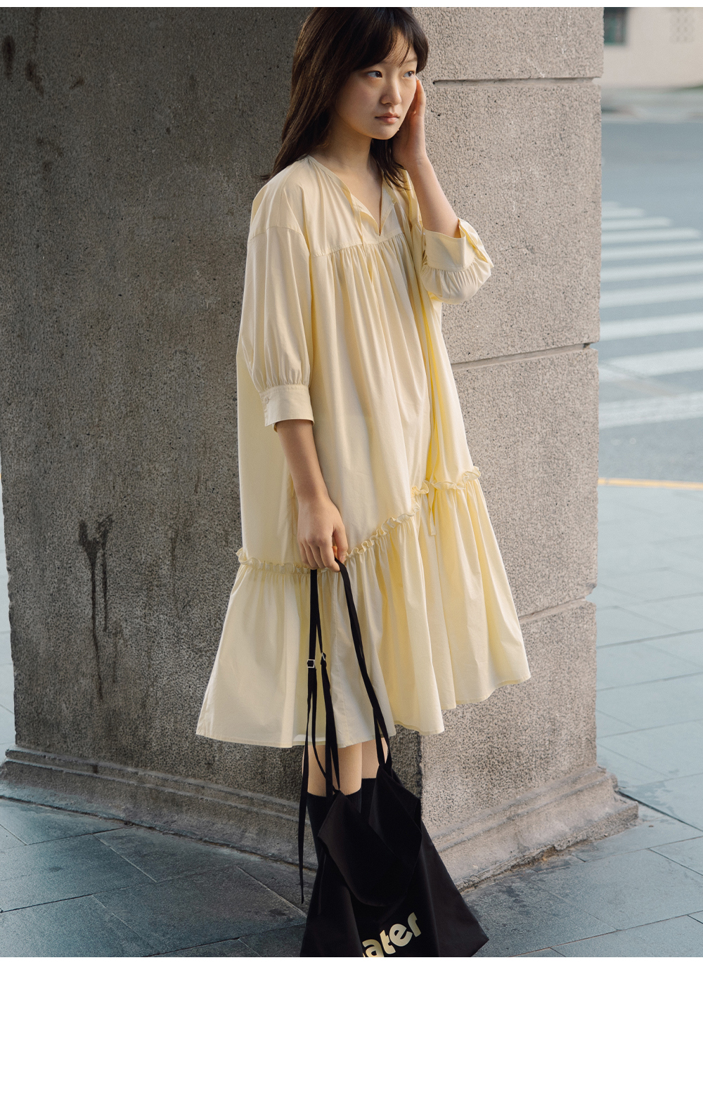 步履不停/5B31168C/7分袖下摆花边连衣裙