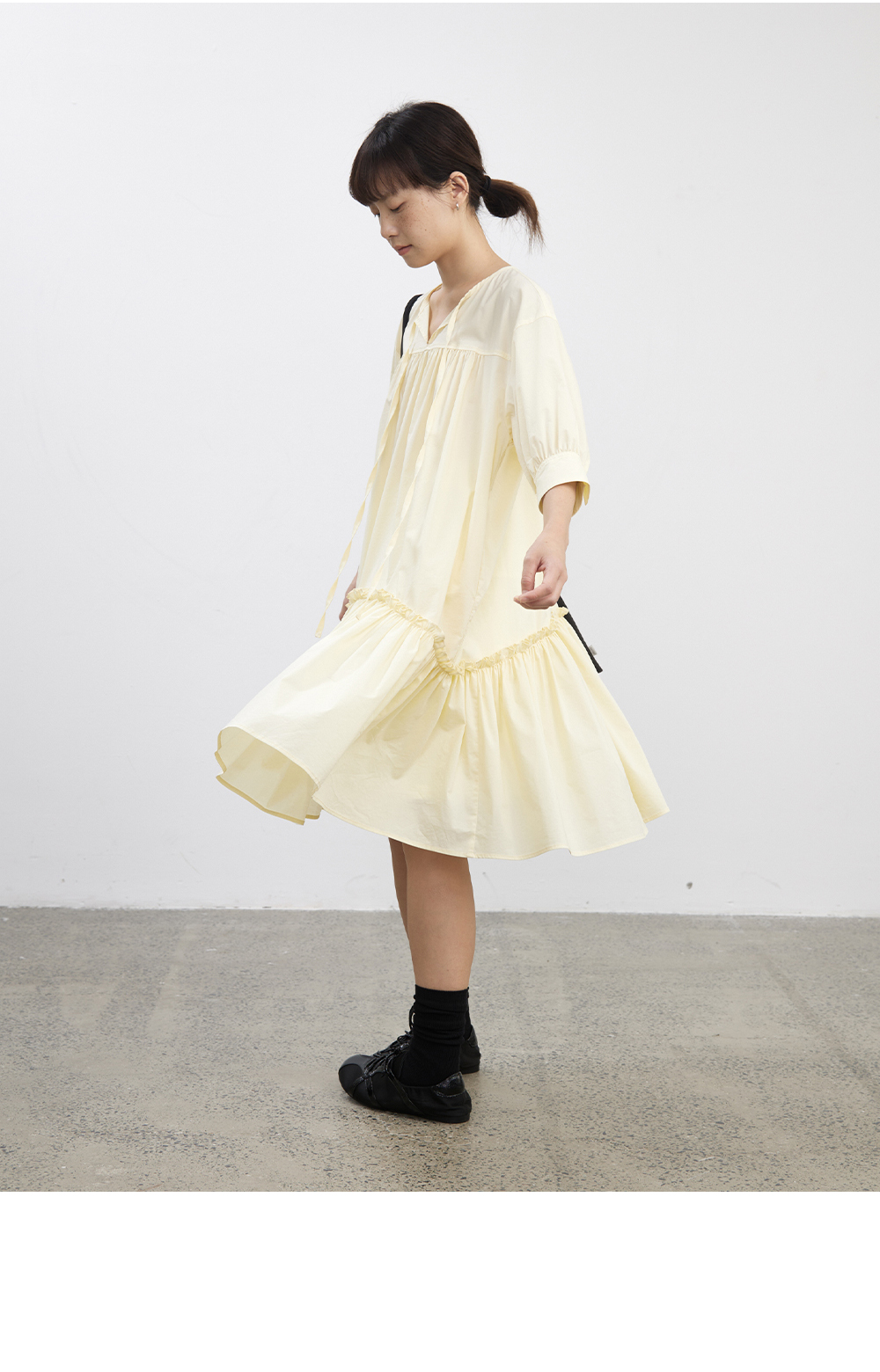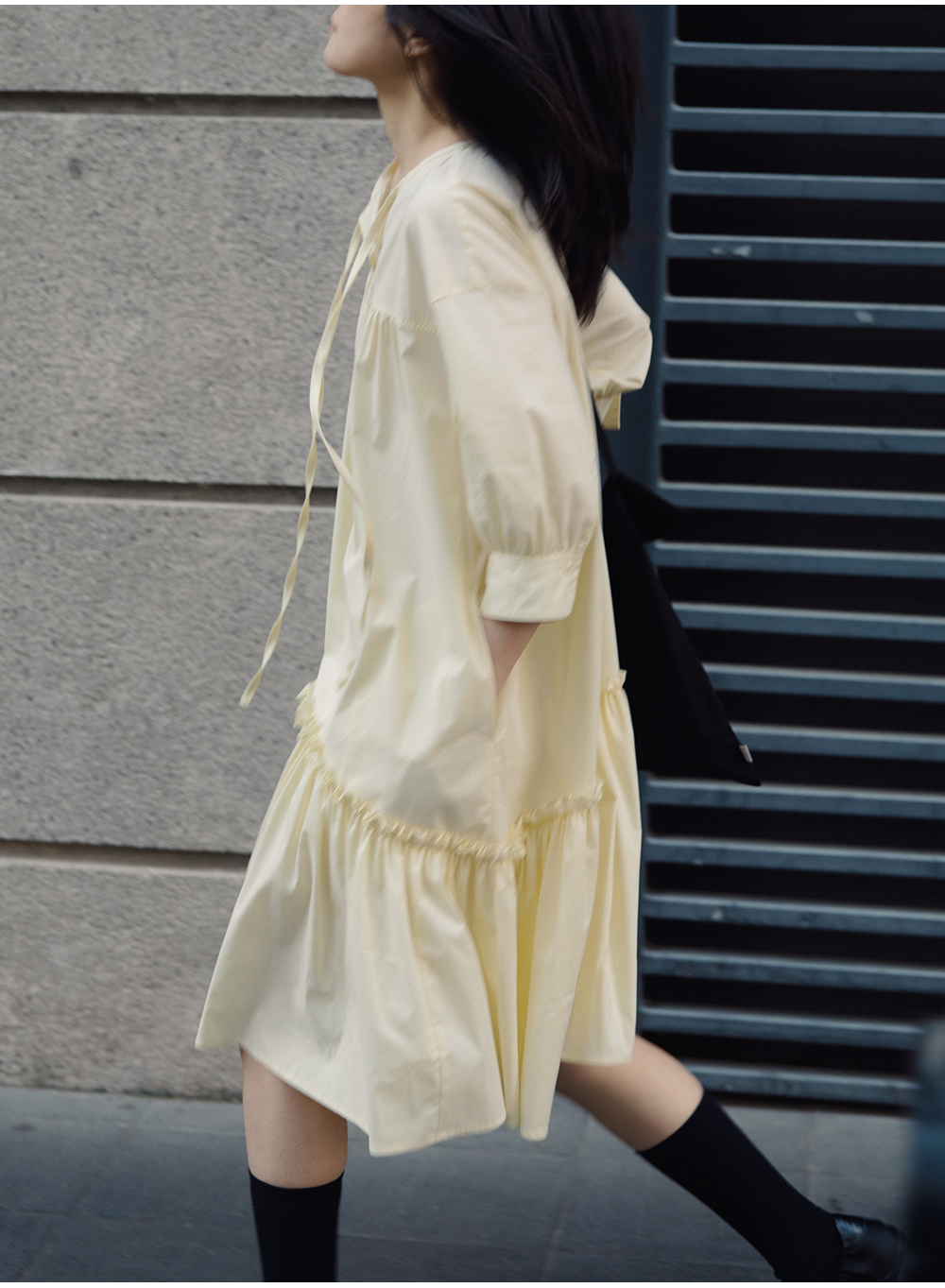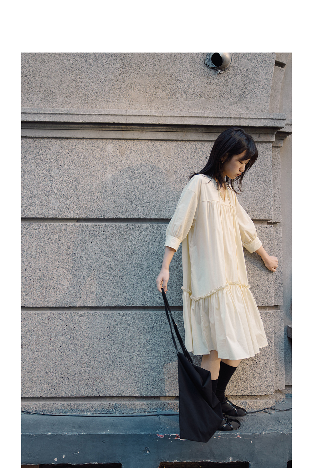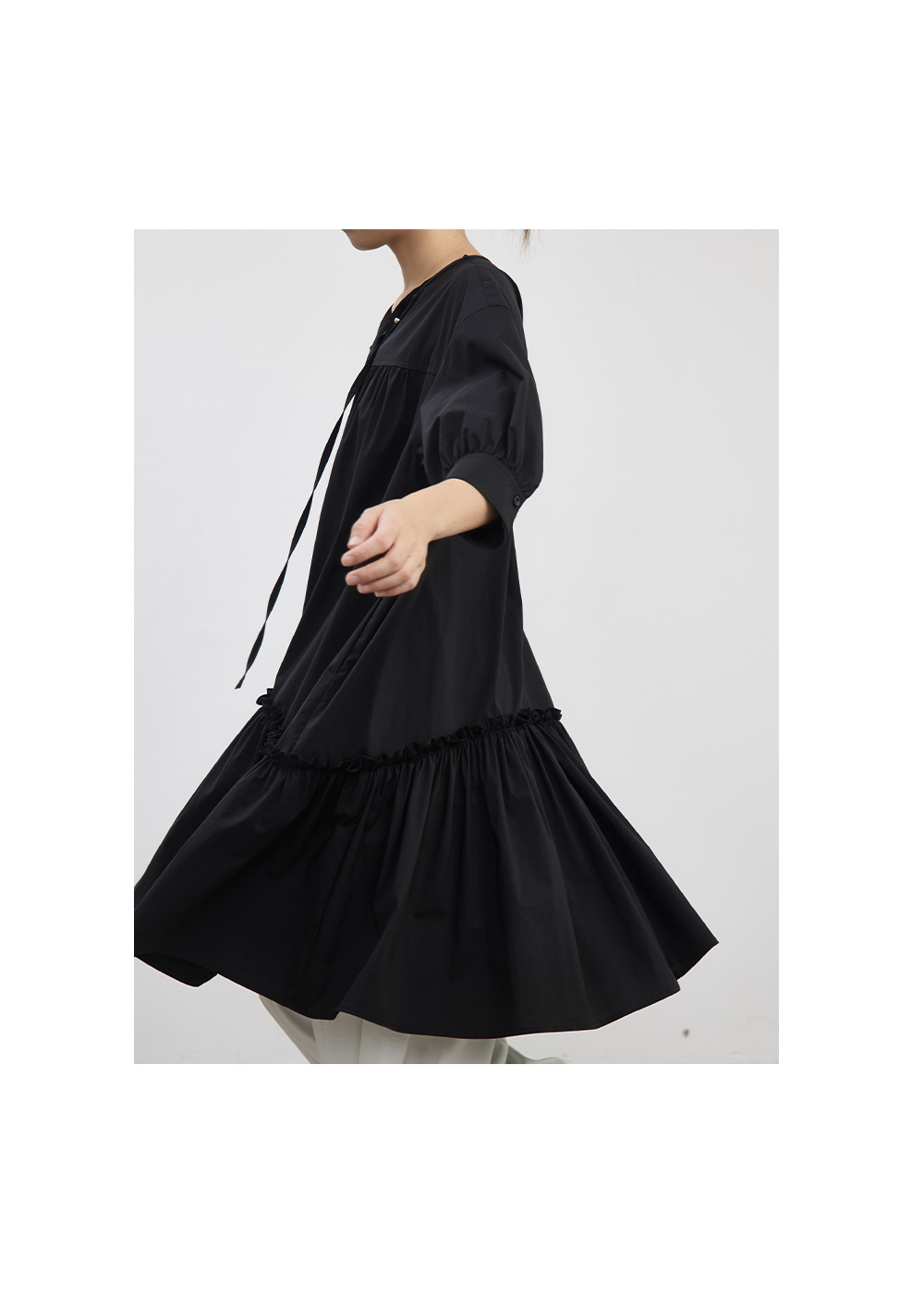 步履不停/5B31168C/7分袖下摆花边连衣裙