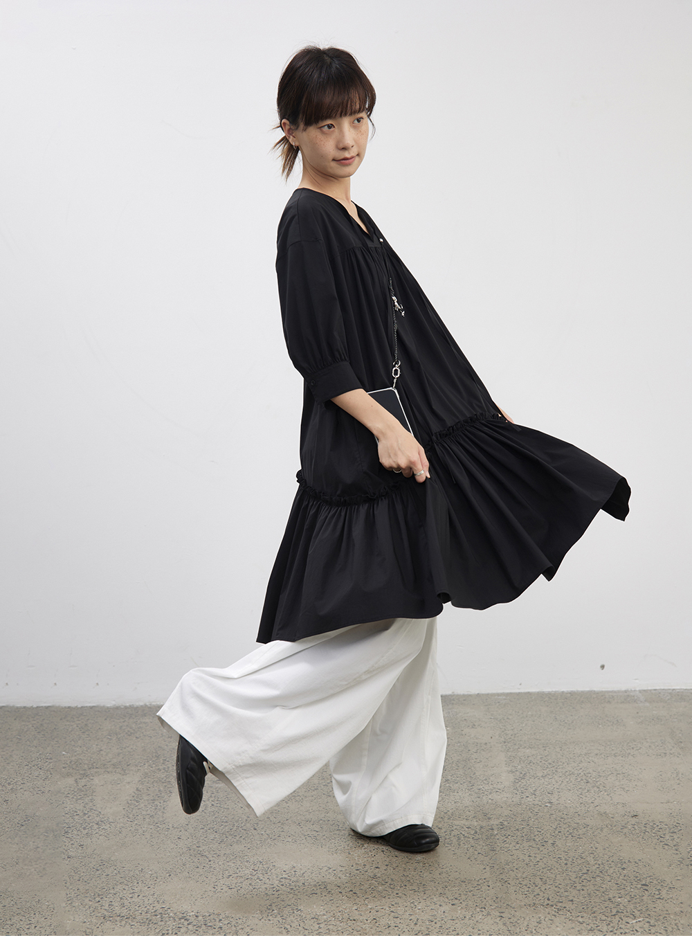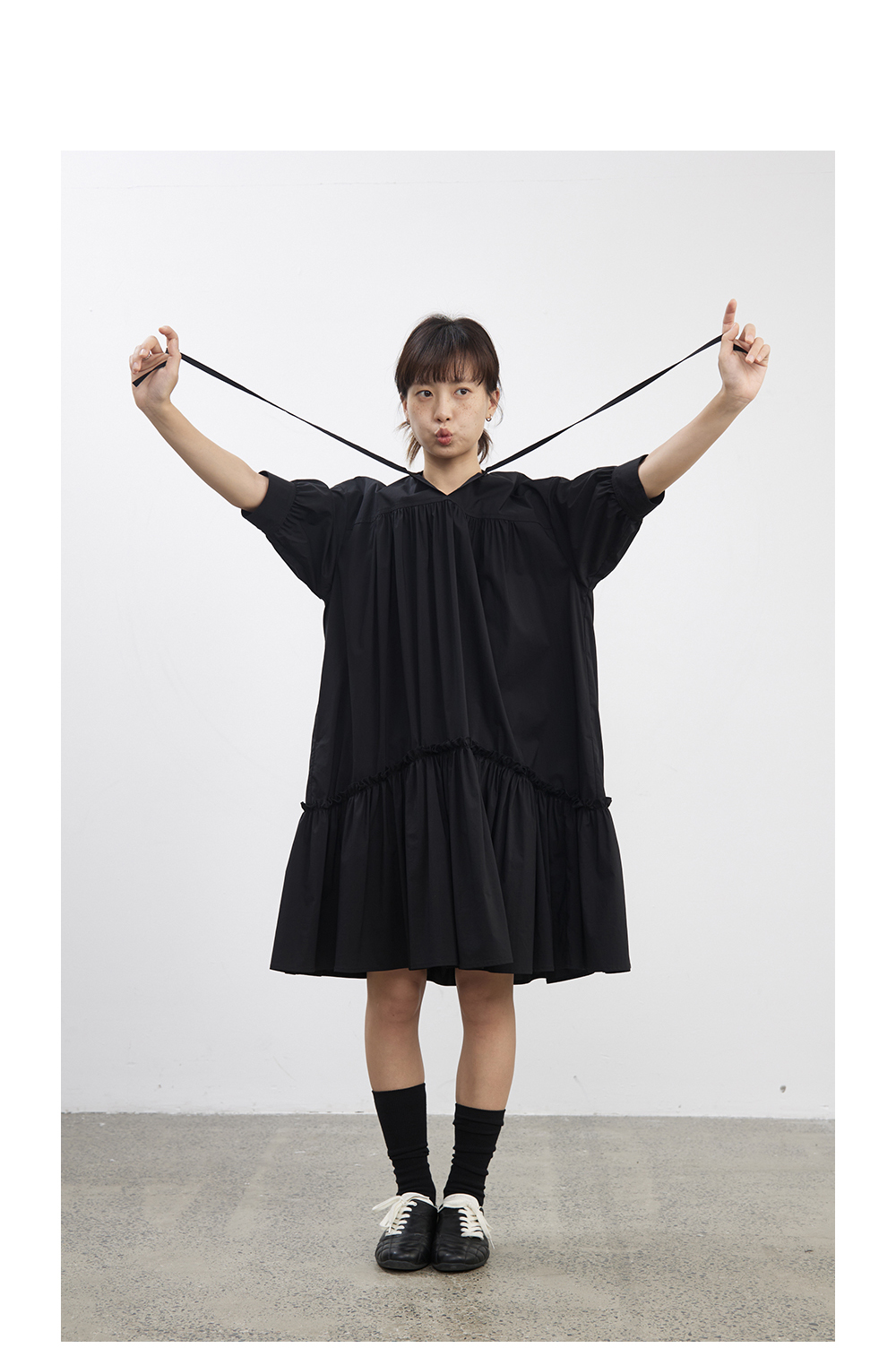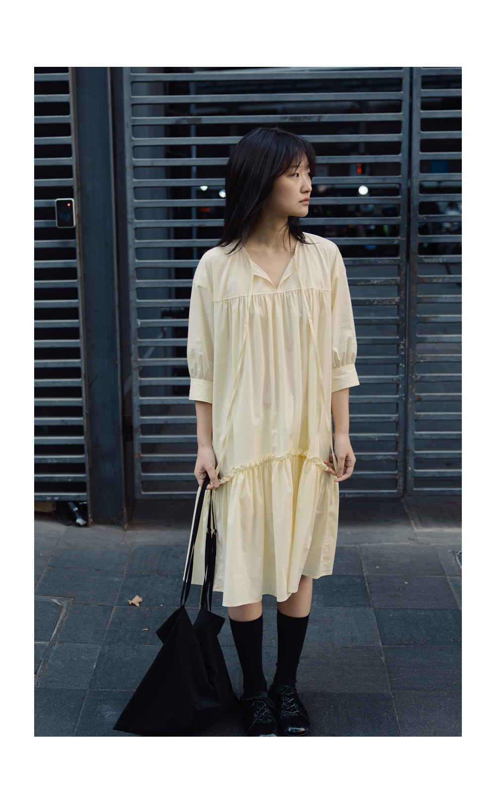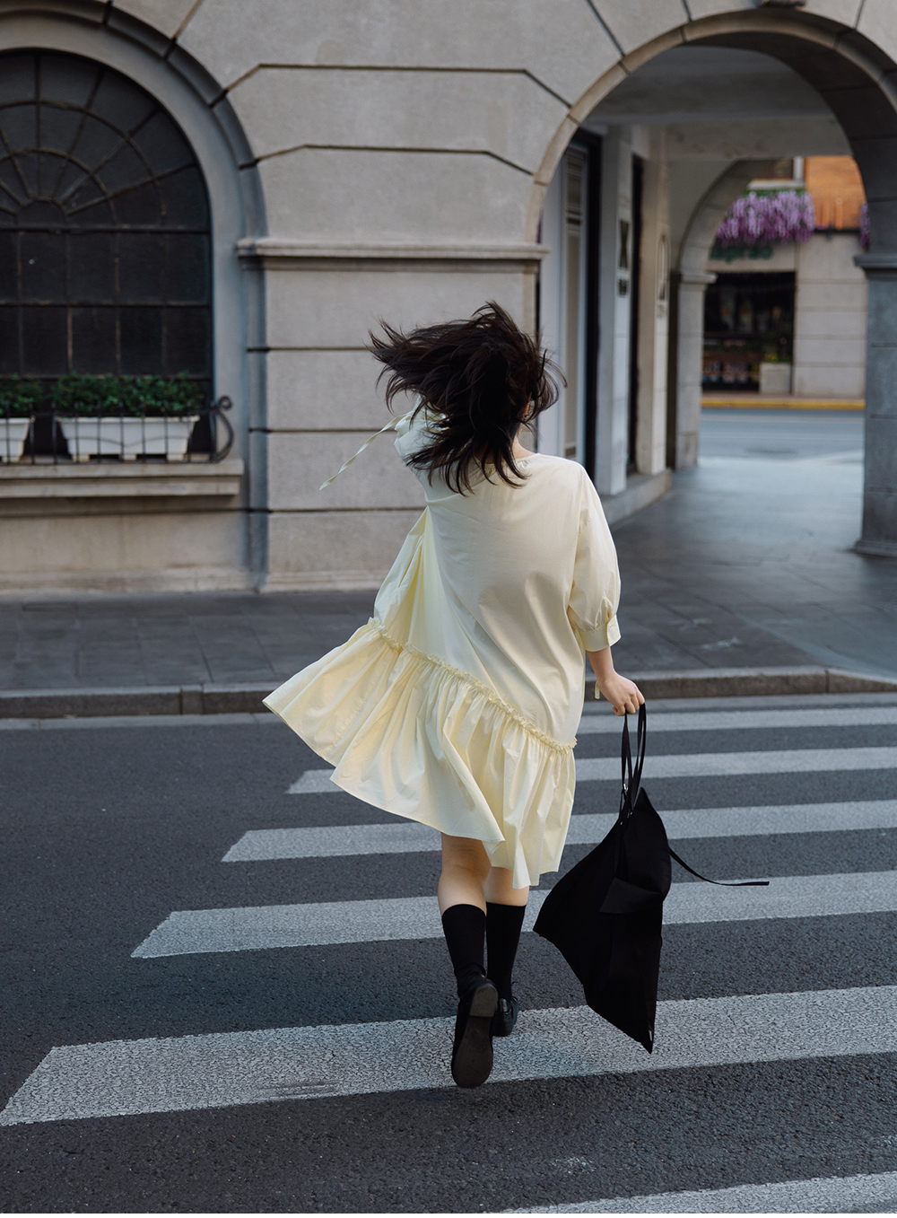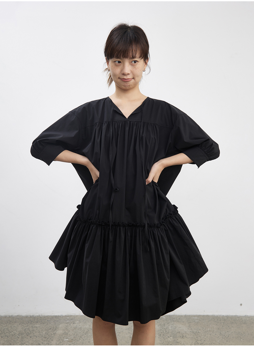 步履不停/5B31168C/7分袖下摆花边连衣裙